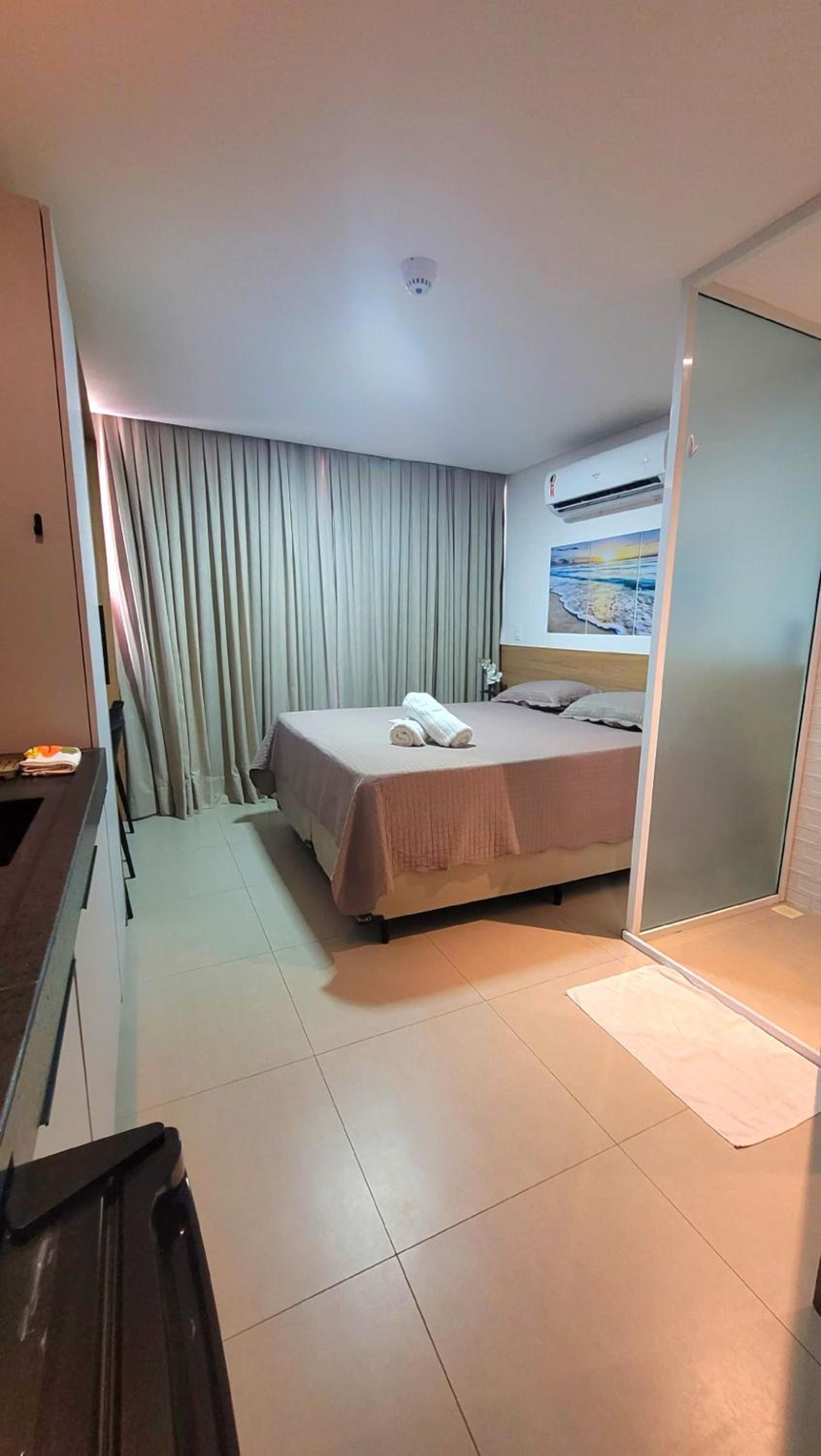 Quarto muito bom e moderno, bem equipado e aconchegante, cama confortável, a cozinha é bem equipada, o banheiro e tem secador de cabelo, somente a nível de sugestão, colocaria um varal de chão dobrável no espaço atrás do armário para que o hospede possa secar as roupas de praia, e na cozinha uma chaleira elétrica pequena iria facilitar ainda mais,seria perfeito, já é muito bom e iria ficar ainda melhor, gostamos muito e certamente pretendemos voltar, parabéns ao anfitrião.