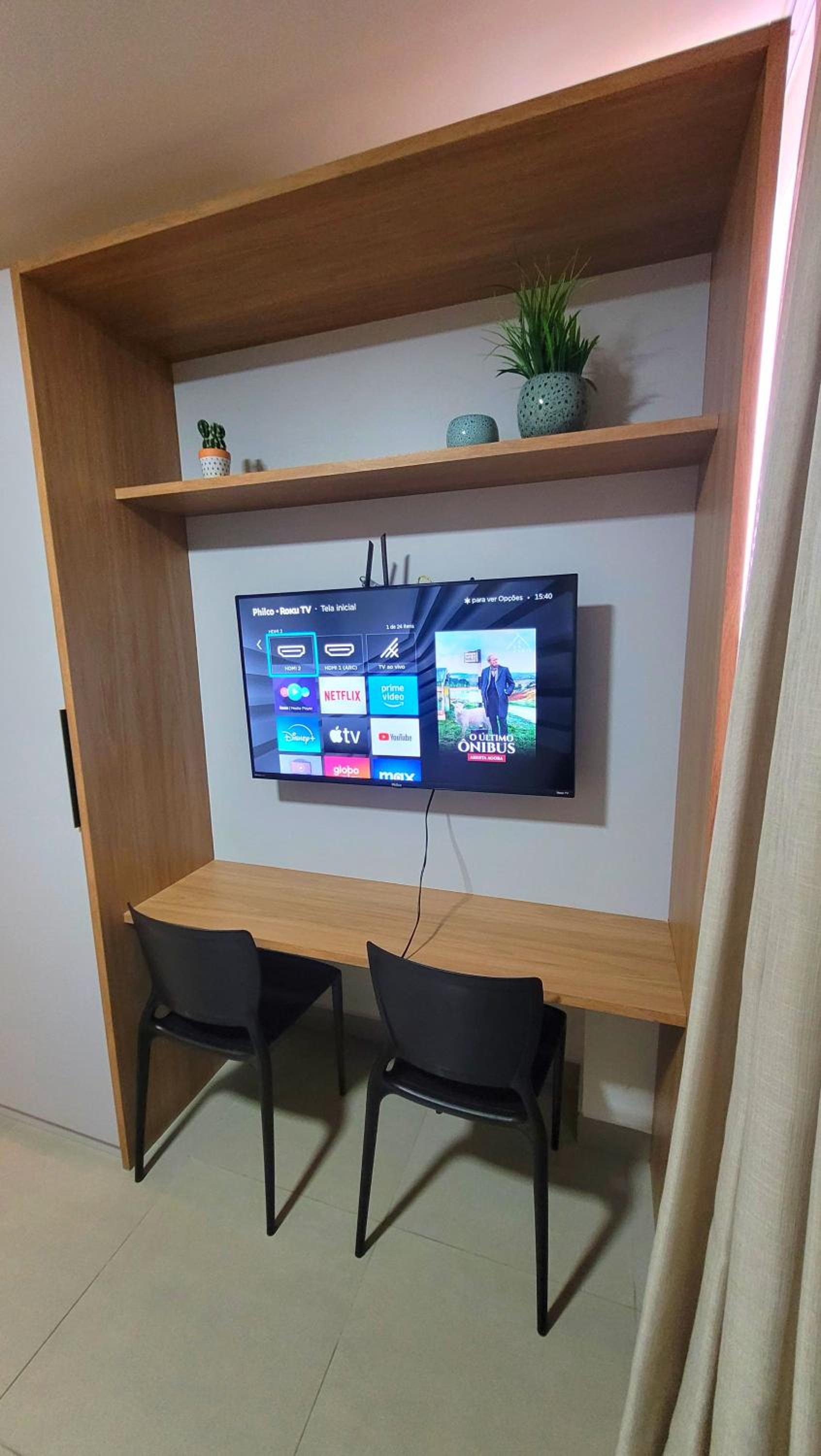 Bem localizado, com ar condicionado, chuveiro e TV e bem organizado!