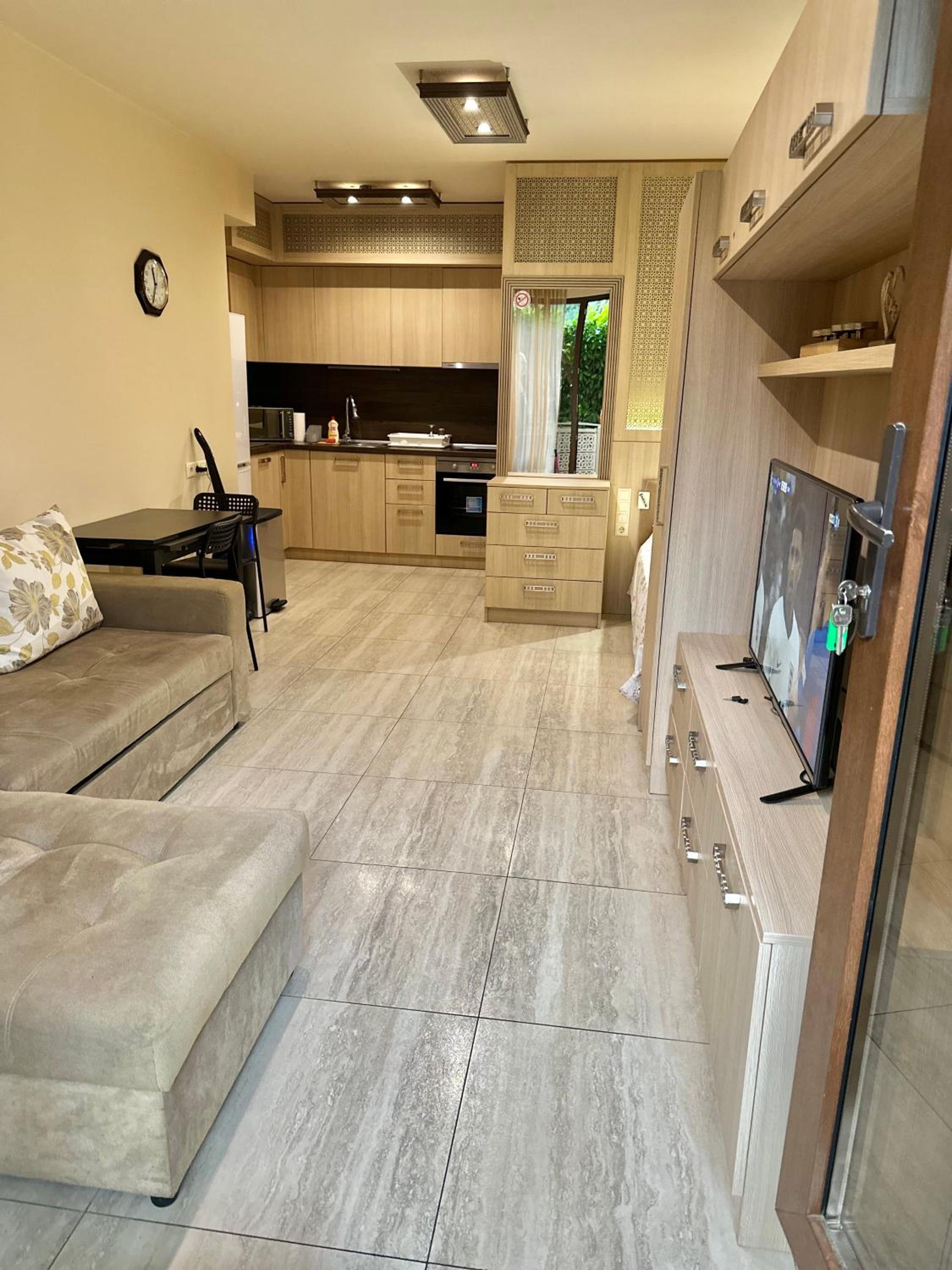 The studio has a terrace with direct access to the pool area. It is nicely decorated and equipped with everything you need. Many thanks to the host for the complimentary coffee and drinks.