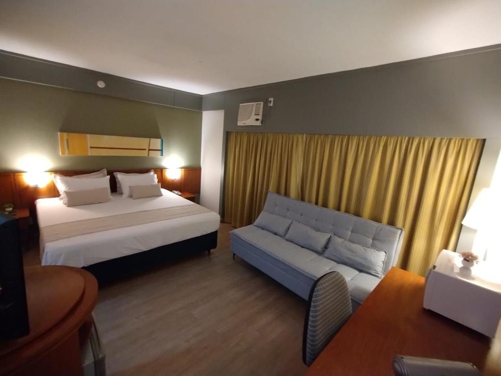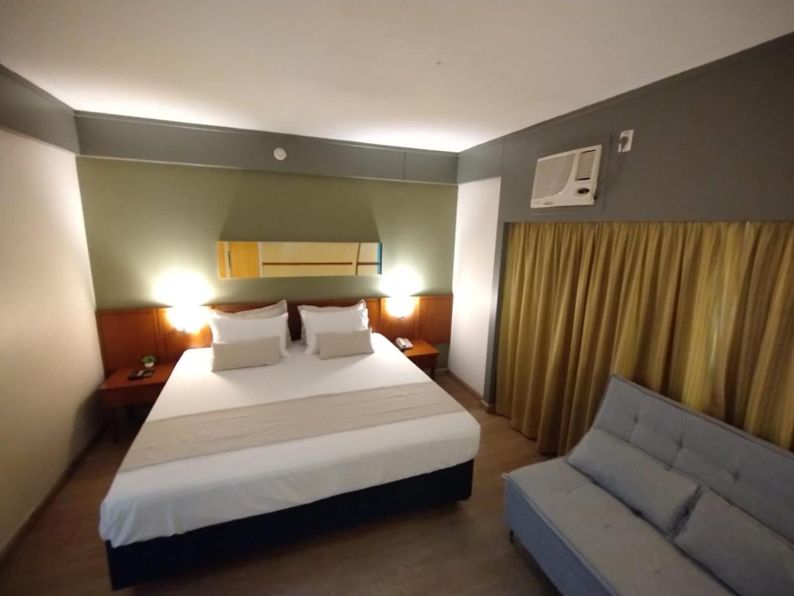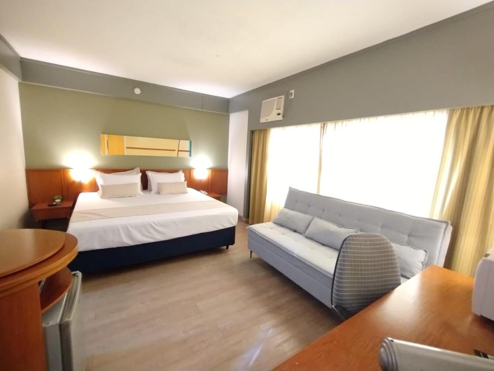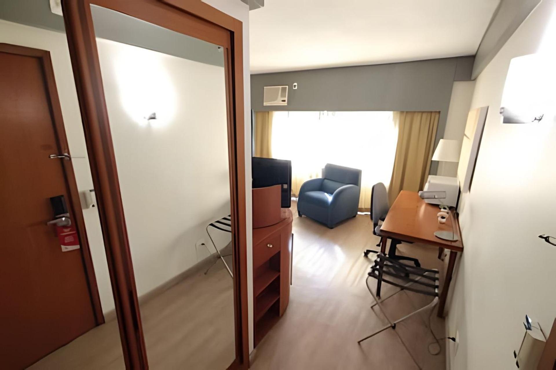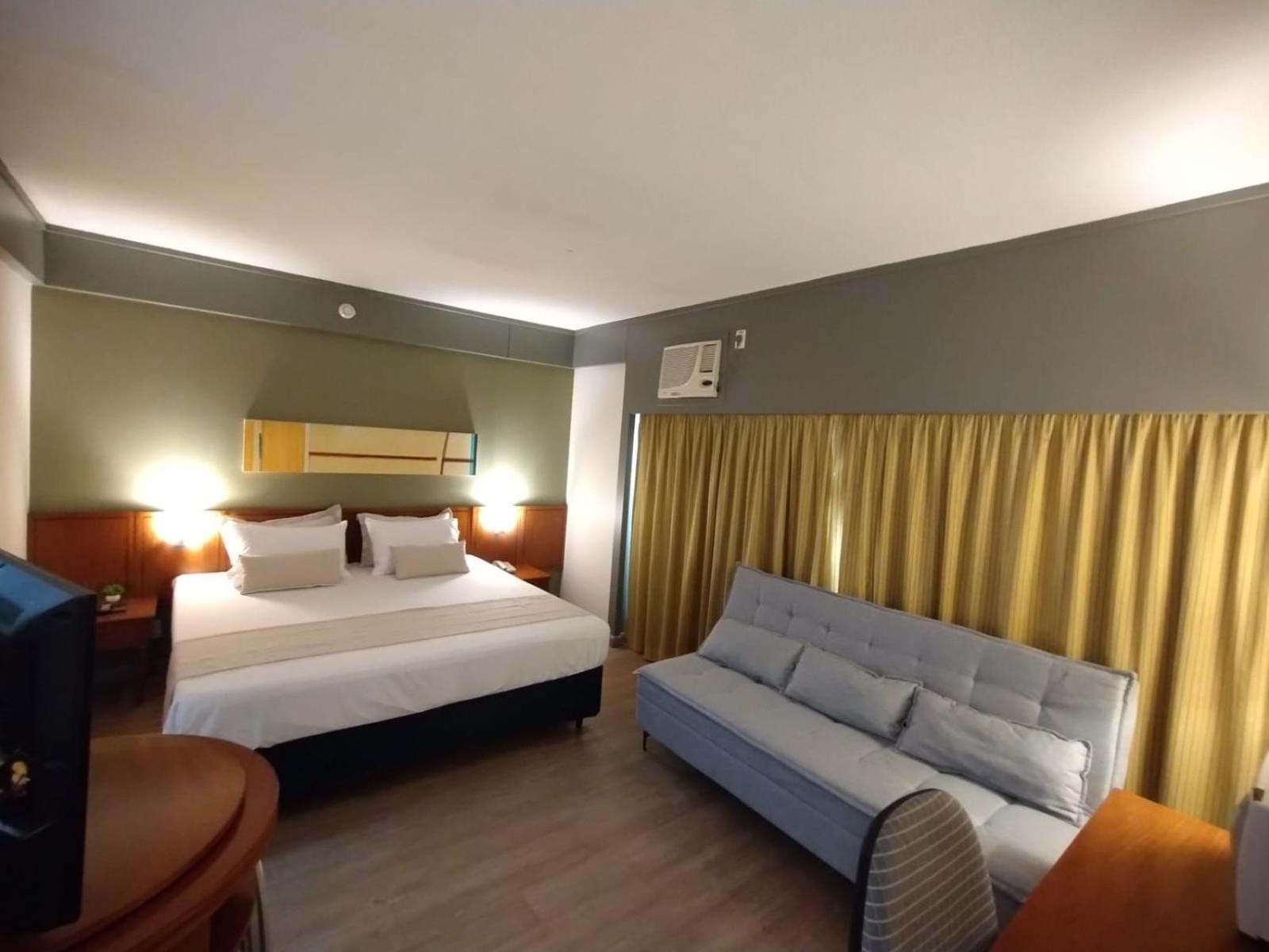 O ar condicionado eh muito antigo, faz muito barulho quando ligado mesmo na função “sleep”, se desligar o ar eh impossível ficar pois fica extremamente abafado. Se abrir janelas o barulho da cidade eh intenso, ou seja, não dormimos bem.
