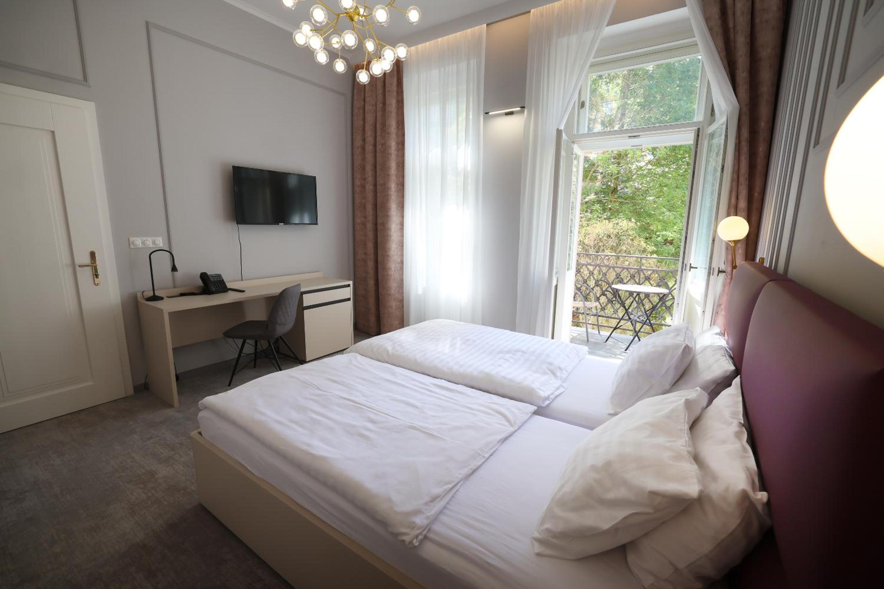 Relax in style in our charming rooms, some featuring a balcony with stunning city views, providing the perfect backdrop for your stay in Karlovy Vary.