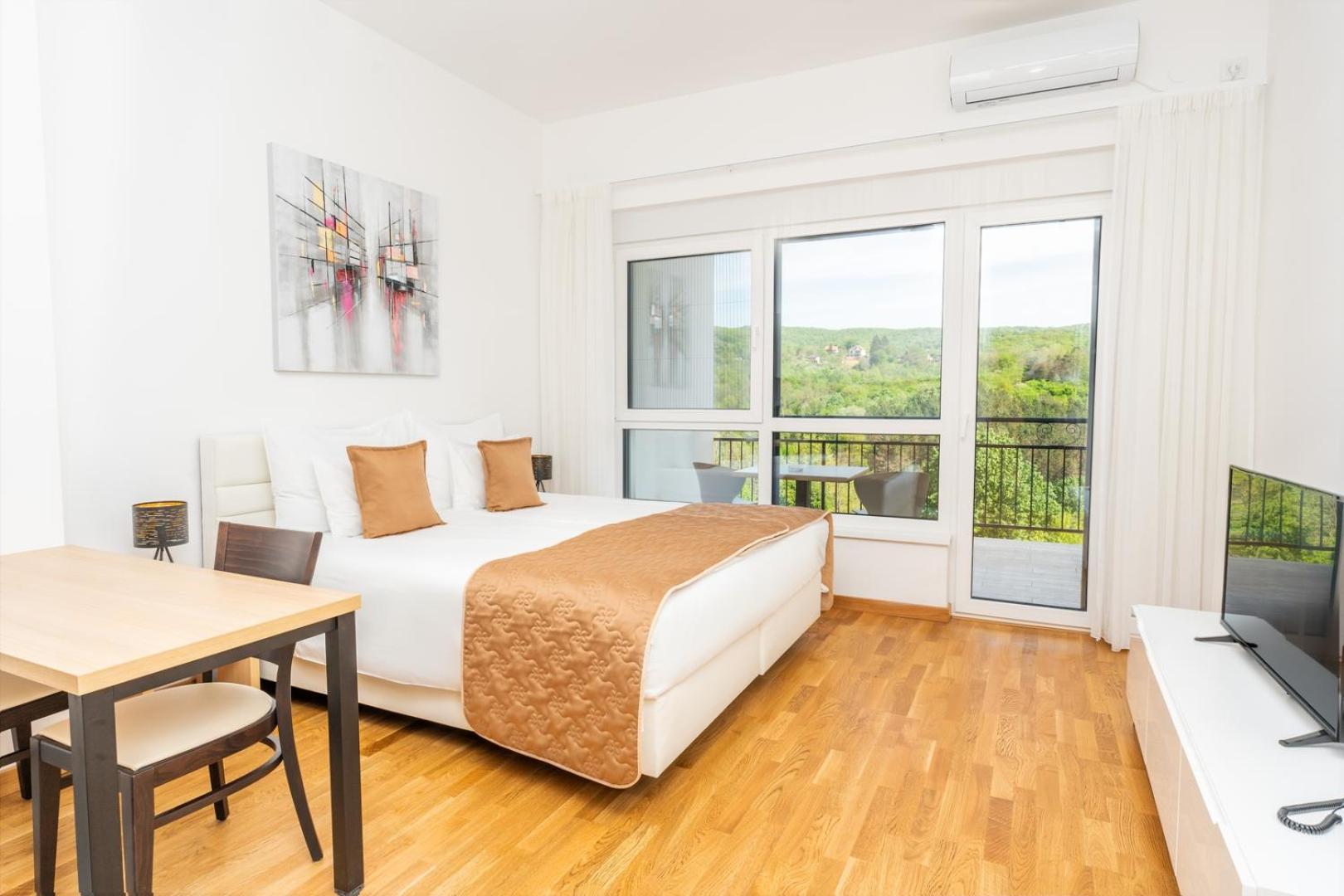 Fruške Residences offers elegant rooms with modern amenities and picturesque views of Fruška Gora National Park. Relax in comfort during your stay.