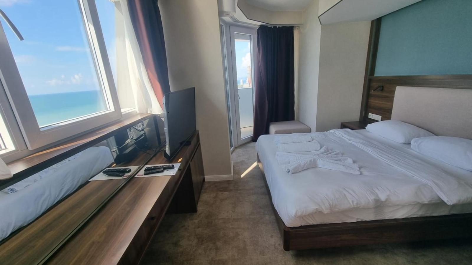 That was the best apartment I ever stayed, it's on the edge of the building entirely facing the sea side. There are only two apartments like this on each floor. Full facilities, big bathroom, big refrigerator, sofa. The mattress was hard right like I love it. There is also carpet on all the floor, not hard cold tiles. Really nice to walk barefoot. I came to Batumi for a weekend to enjoy the city, but I didn't want to leave the apartment, so good it was. If you have enough money, I recommend to book it.