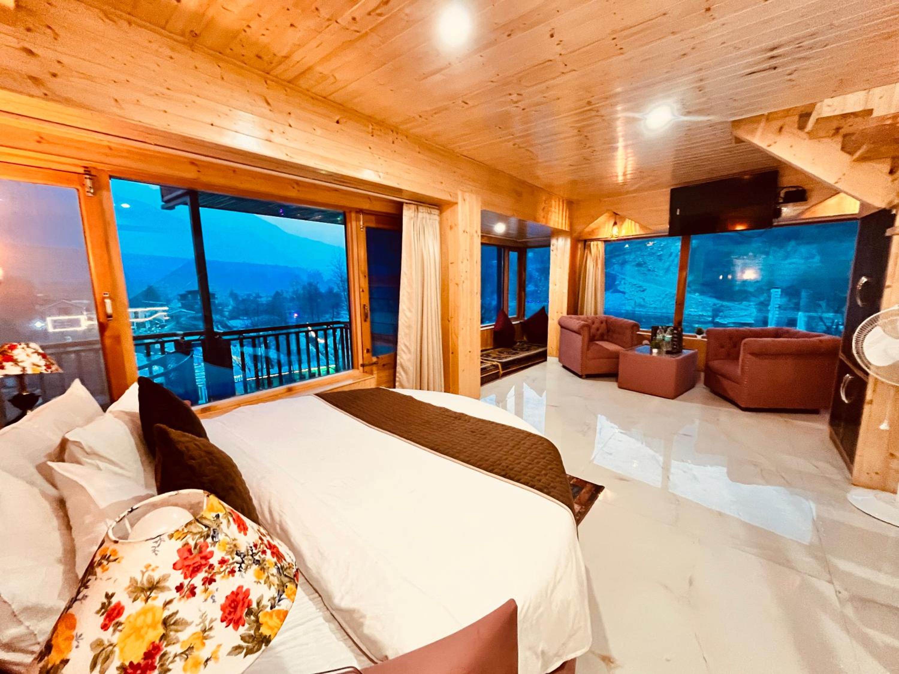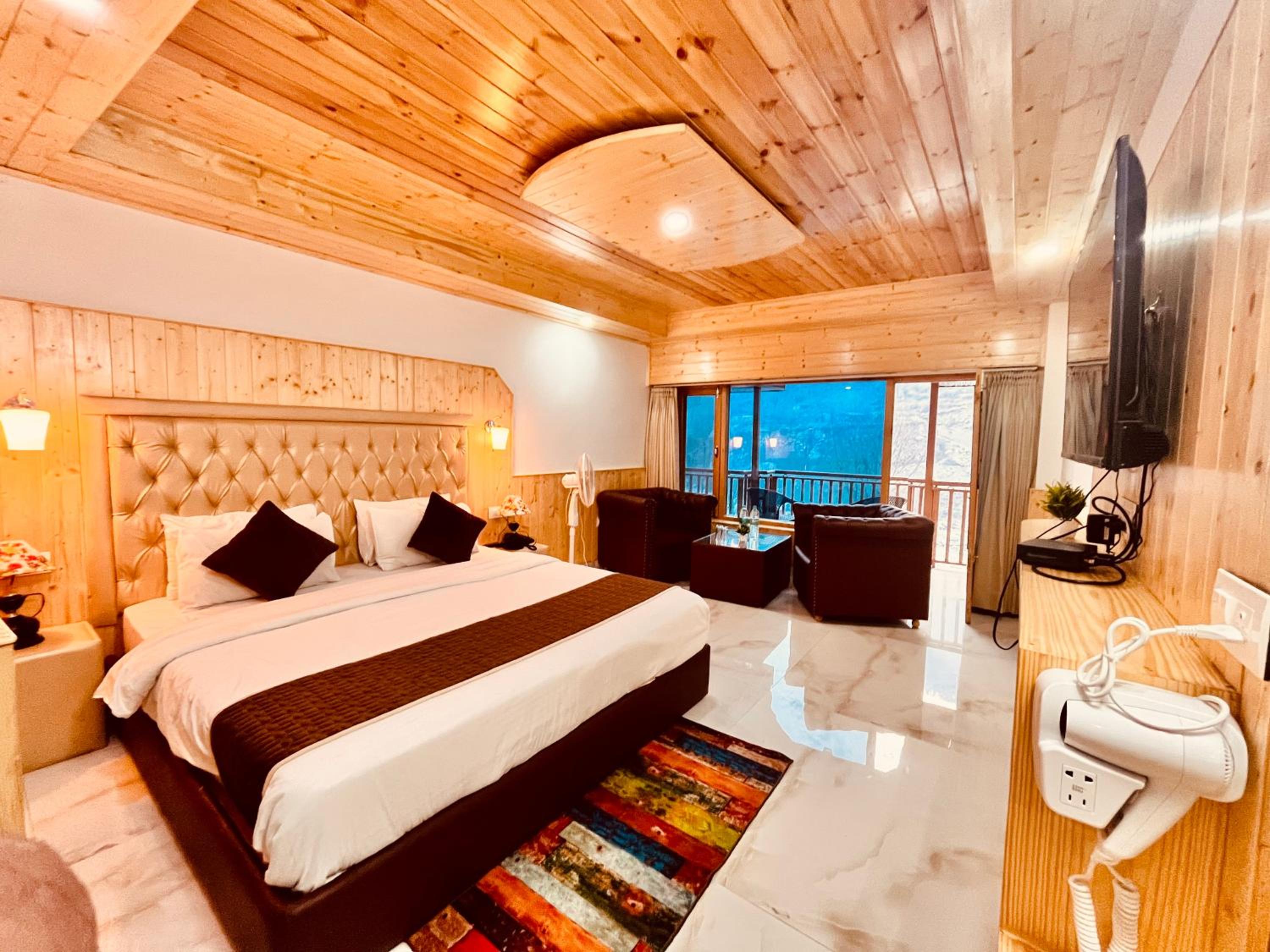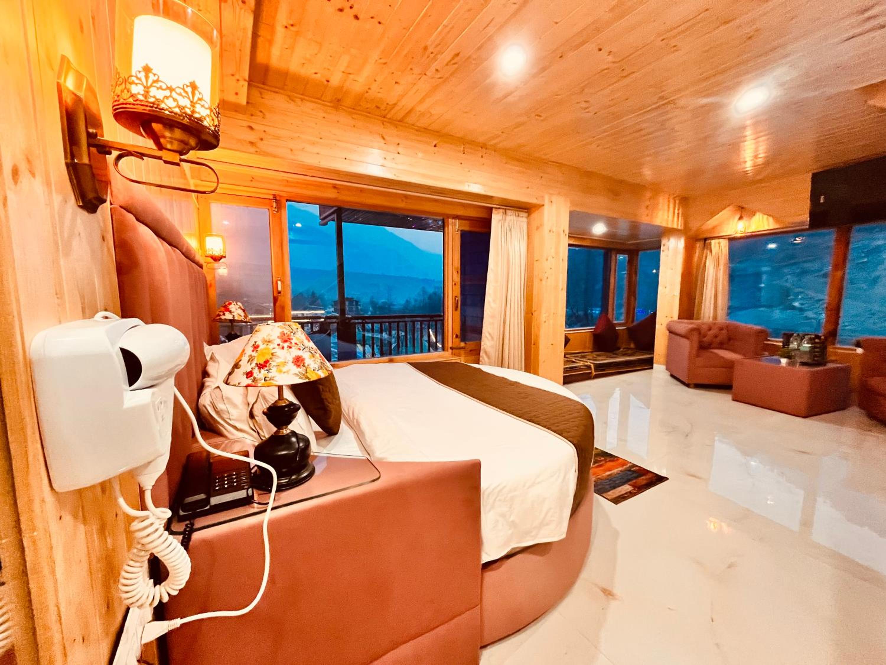 Indulge in the comfort of our luxury balcony rooms with stunning mountain views.