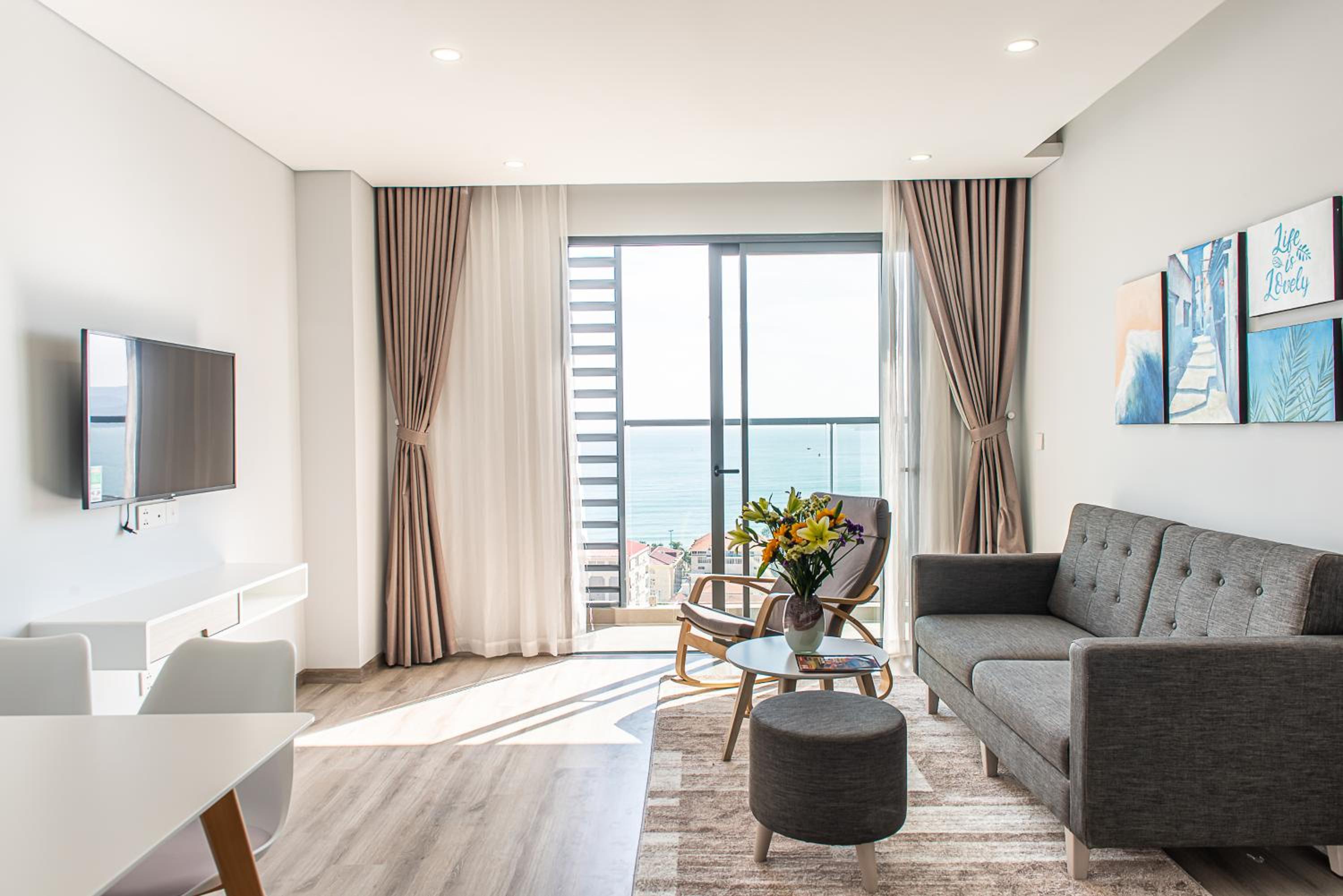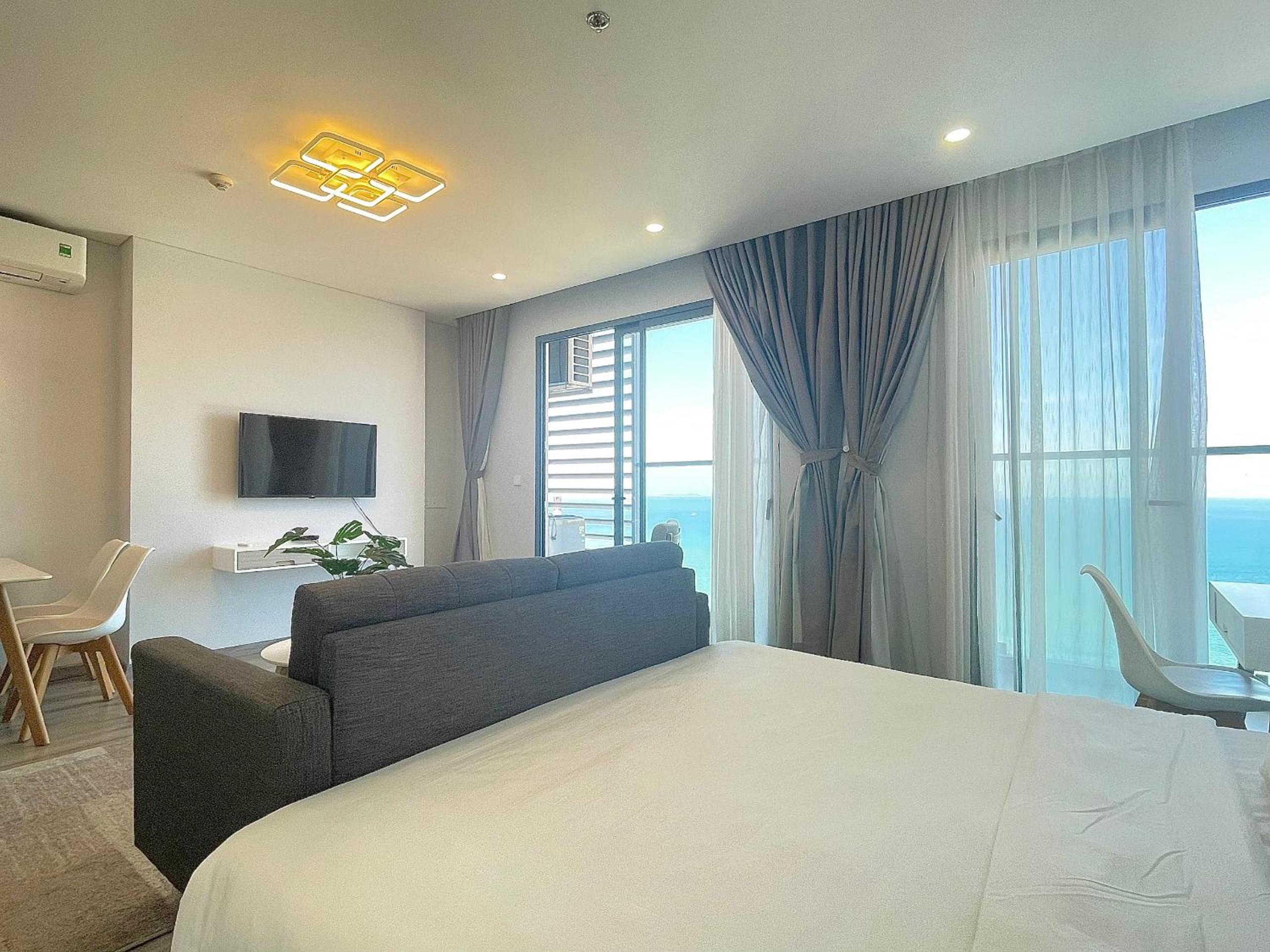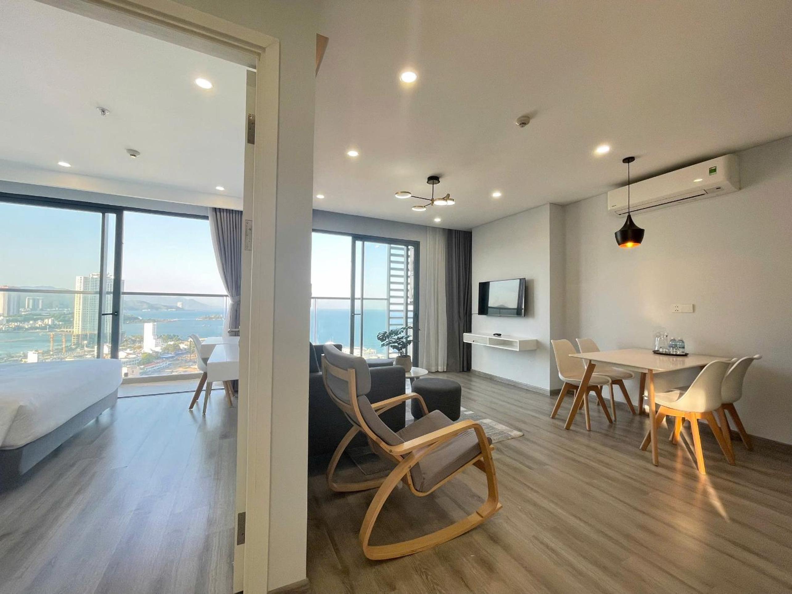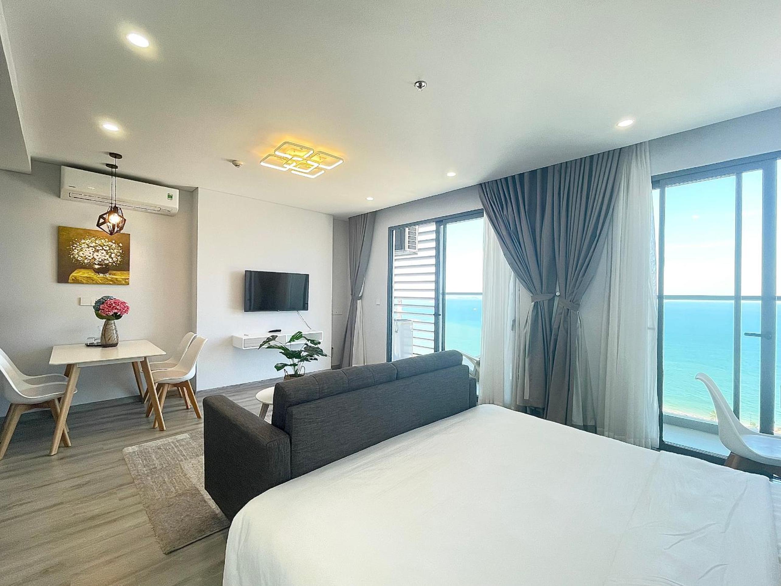 MARINA SUITES Apartment, a 4-star gem in Nha Trang, offers breathtaking city views and a convenient 24-hour front desk. The rooms are elegantly furnished with modern amenities like air conditioning, flat-screen TVs, and well-equipped kitchens. Guests can enjoy sea views from their rooms and relax on the terrace overlooking the beach.