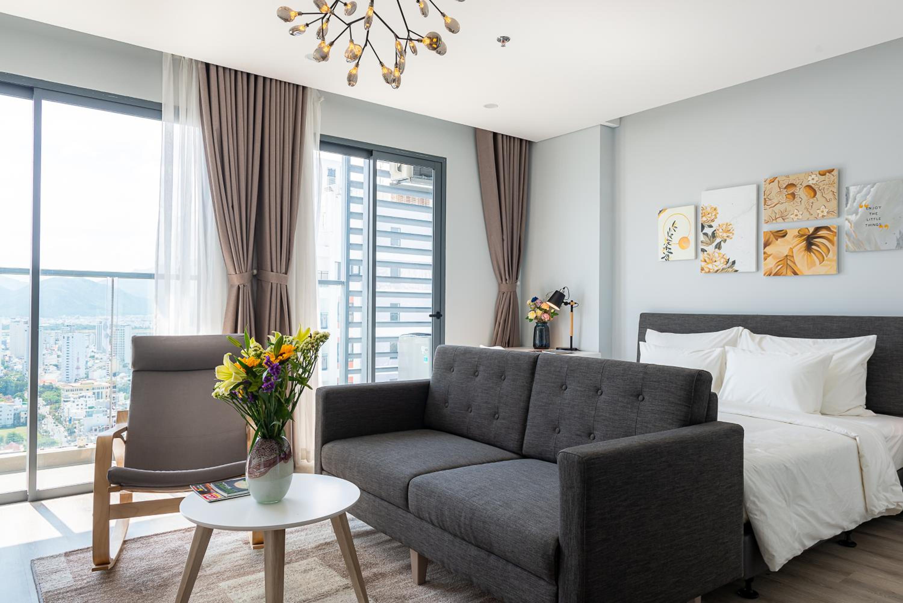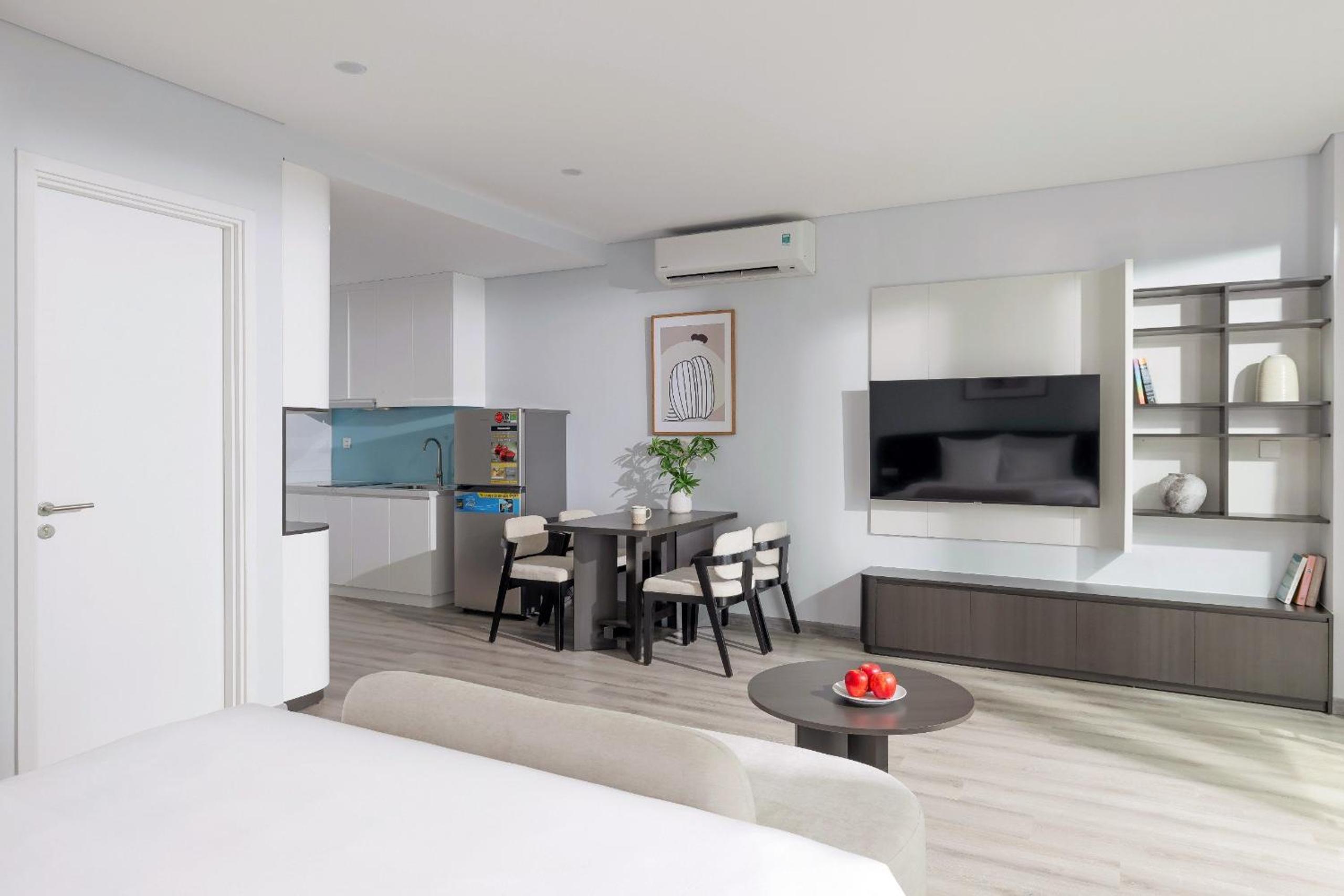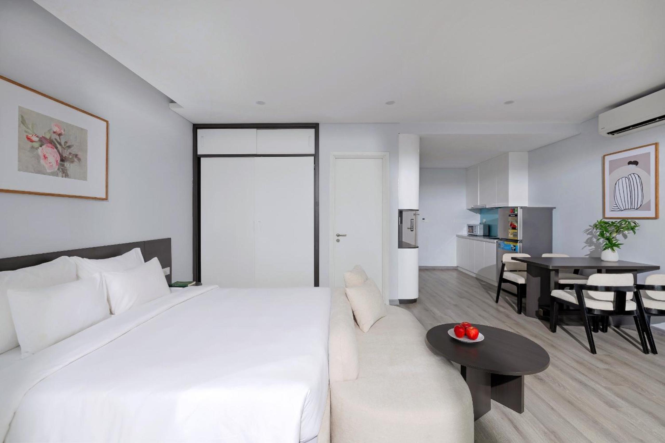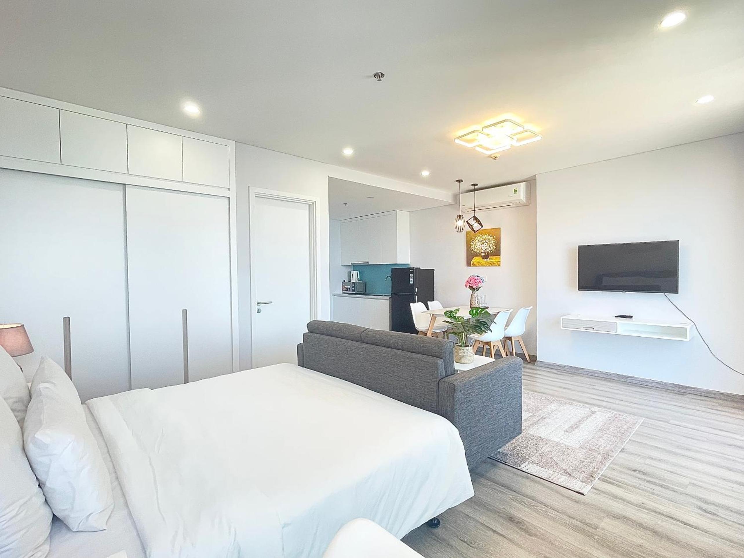 MARINA SUITES Apartment, a 4-star gem in Nha Trang, offers breathtaking city views and a convenient 24-hour front desk. The rooms are elegantly furnished with modern amenities like air conditioning, flat-screen TVs, and well-equipped kitchens. Guests can enjoy sea views from their rooms and relax on the terrace overlooking the beach.