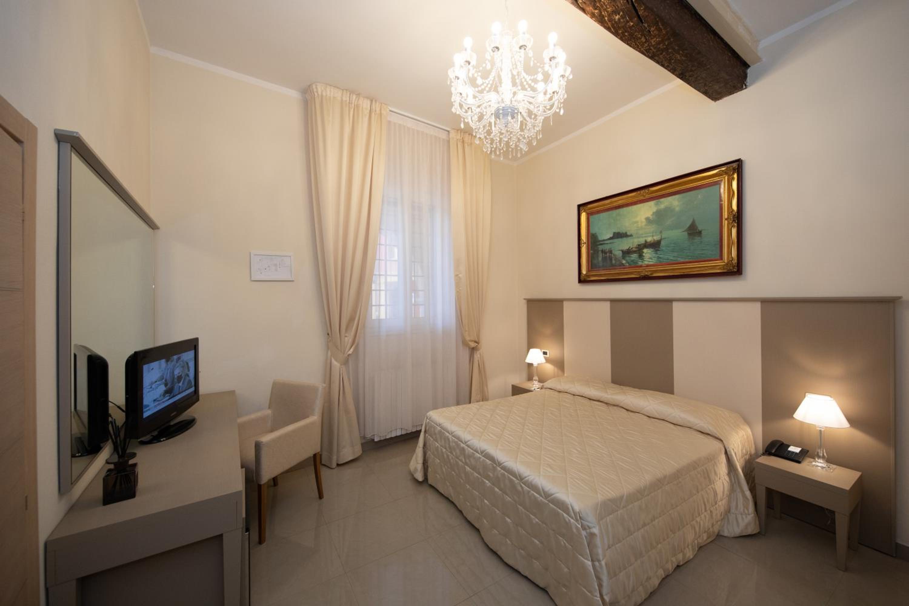 Albergo Rossini 1936, just outside Bologna’s pedestrian area, offers elegantly furnished rooms with free WiFi and LCD TVs. Enjoy the comfort of air conditioning, a spacious desk, and charming parquet floors in every room. For a breathtaking experience, opt for top-floor rooms with panoramic views of Bologna's historic center.