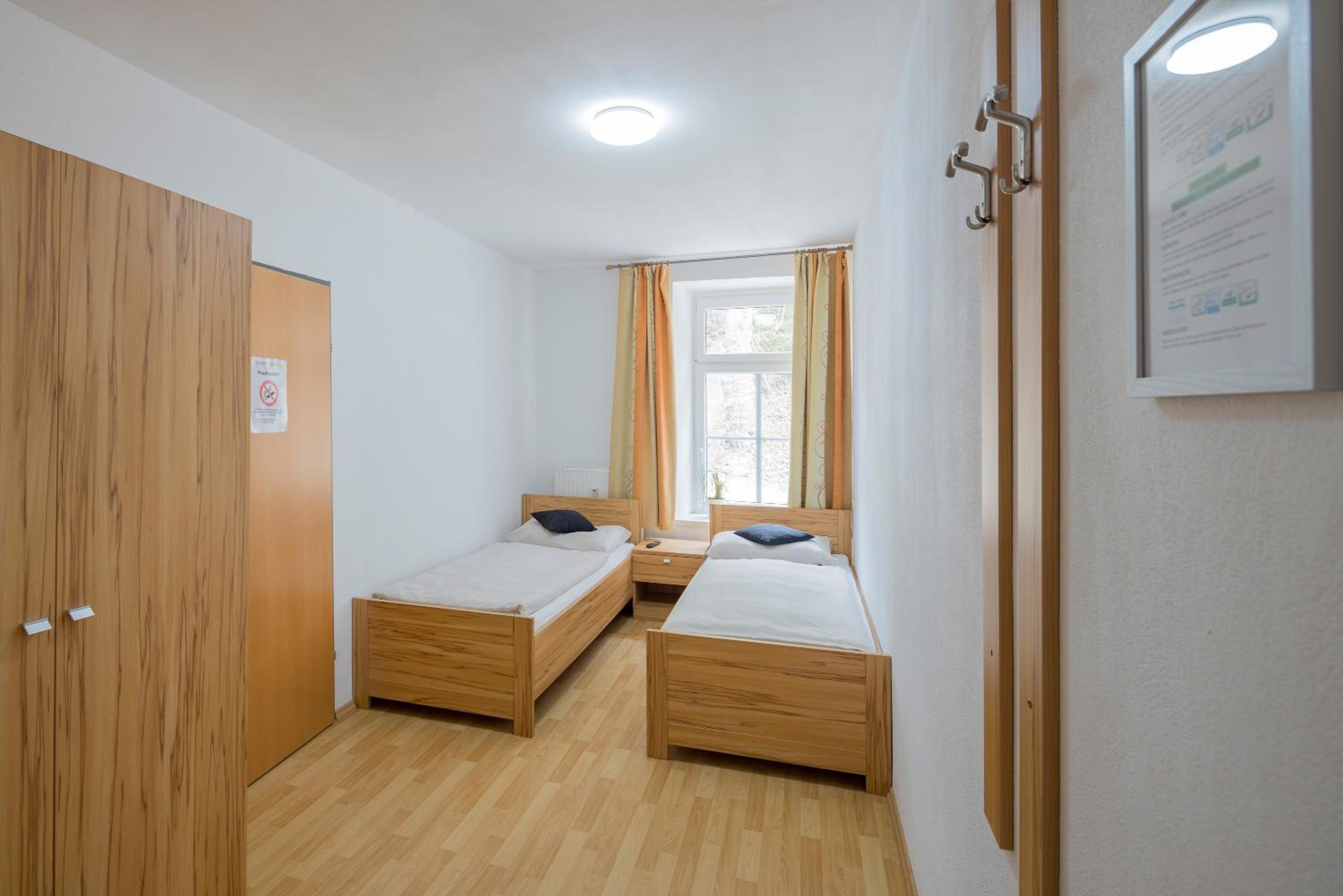Bez klimatizace a nesmí se nechat otevřené okno. Absolutně nechápu v létě. V zimě to chápu, rychle vyvětrat, topí se. Ale v létě se upéct v pokoji bez klimatizace? Venku bylo přes 30 st. Čistota nic moc. V kuchyni chybí ostrý nůž.