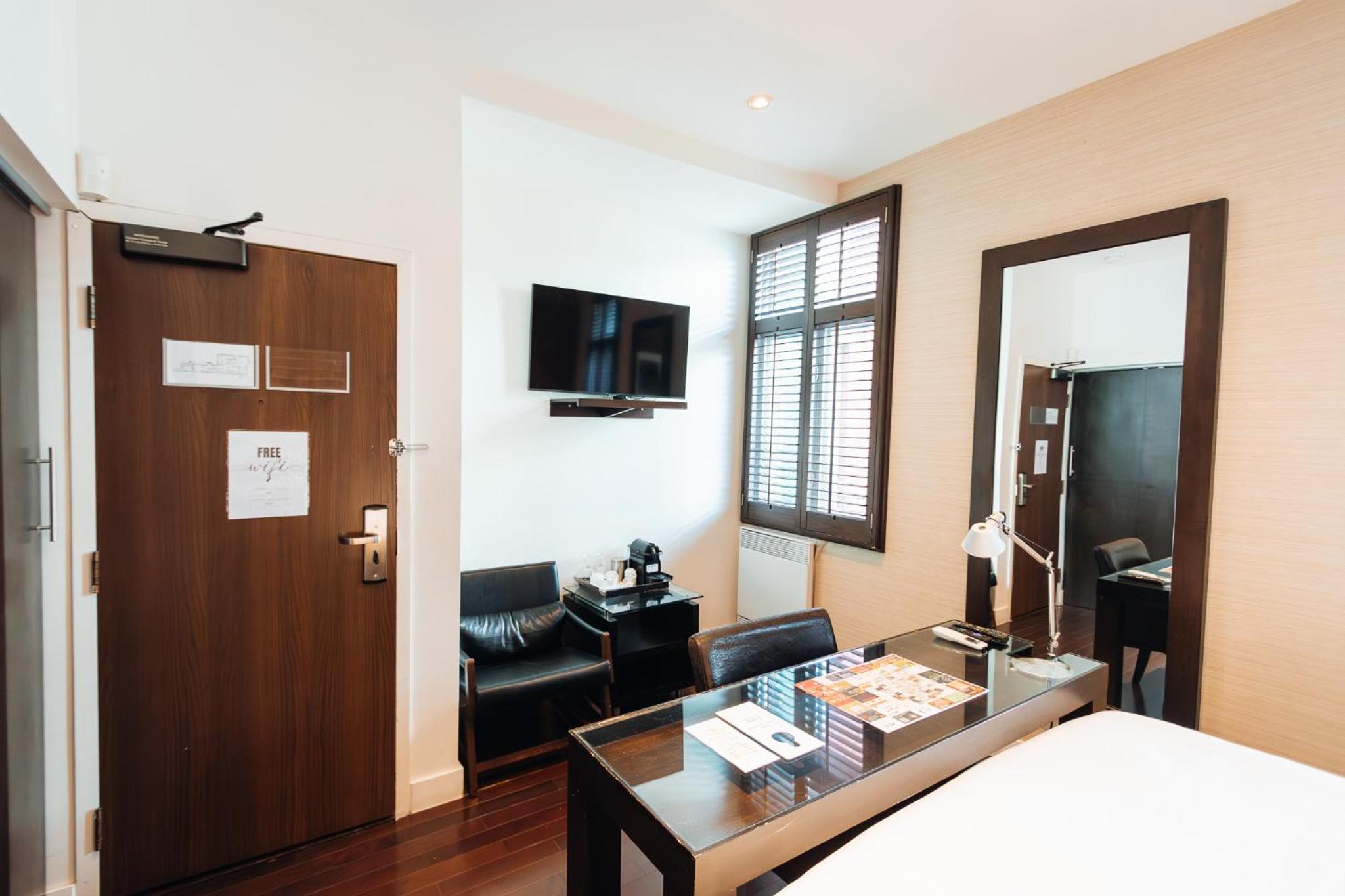 On s’y sent très bien, décoration soignée, chambre et salle de bain moderne et confortable, tout est pensé pour qu’on s’y sente comme à la maison, télévision récente, la machine à café dans la chambre ainsi que le bar à collation ont vraiment été appréciés