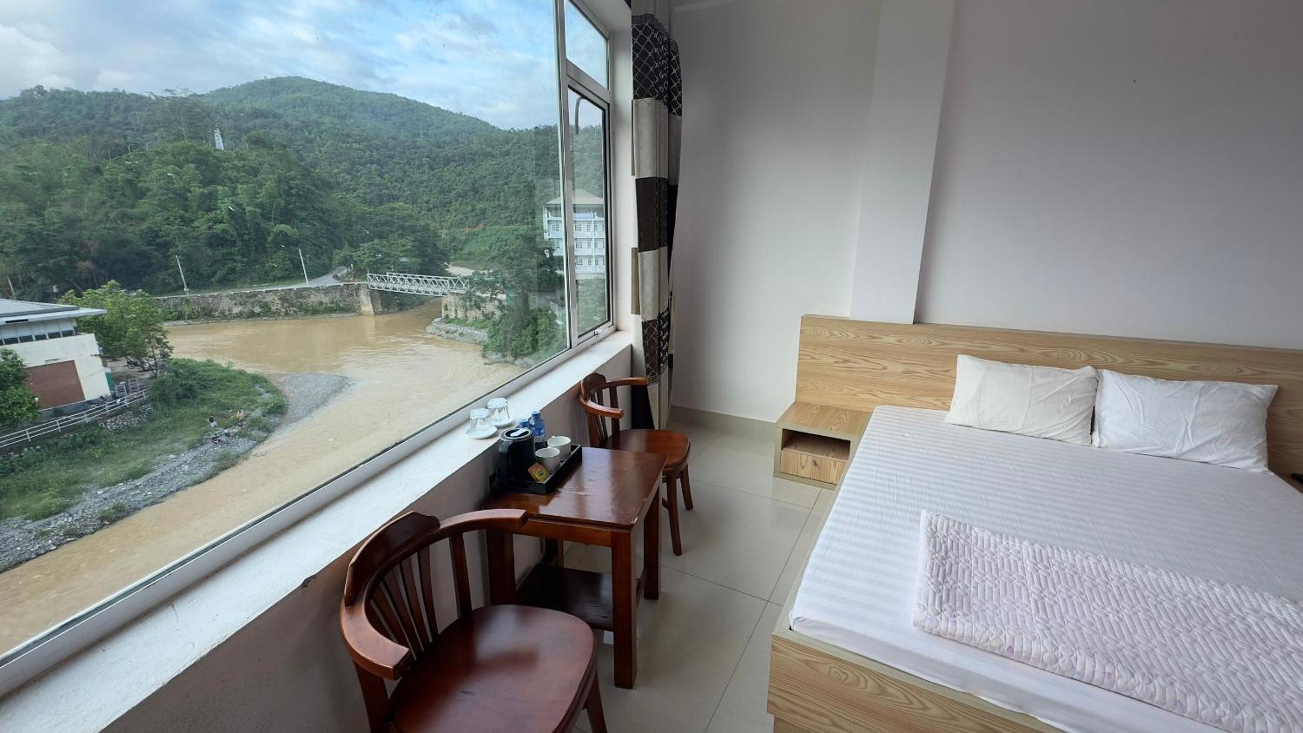 Chambre agréable et spacieuse, grande fenêtre avec une vue sur la montagne environnante et la rivière. Très bon accueil. Tout près du marché. Pas bruyant du tout.Je recommande.