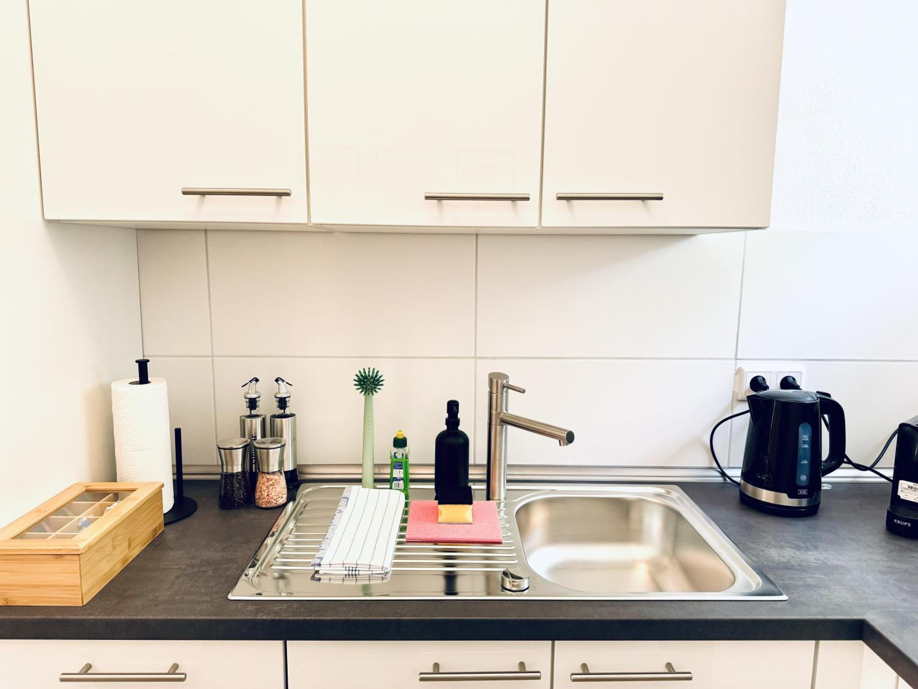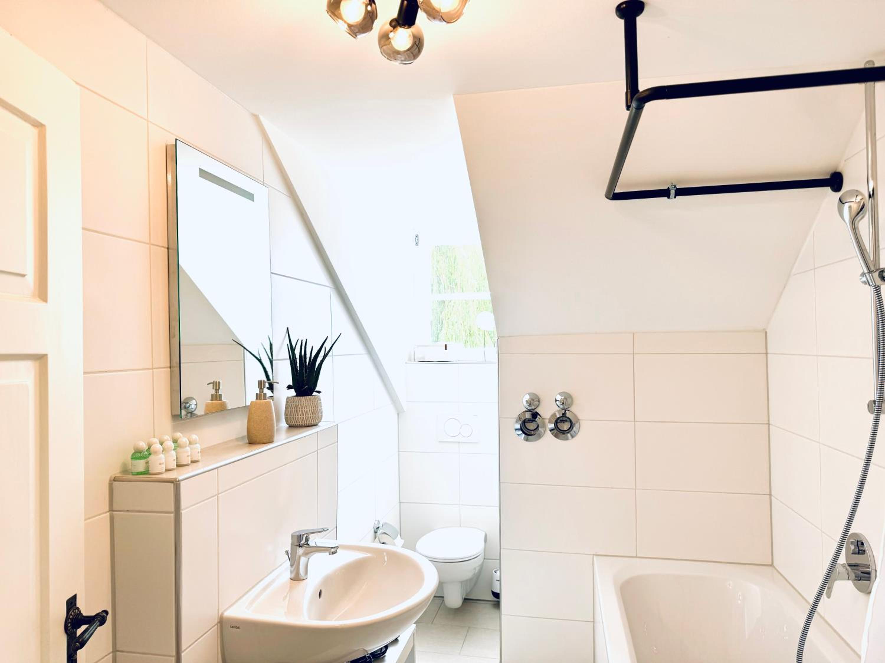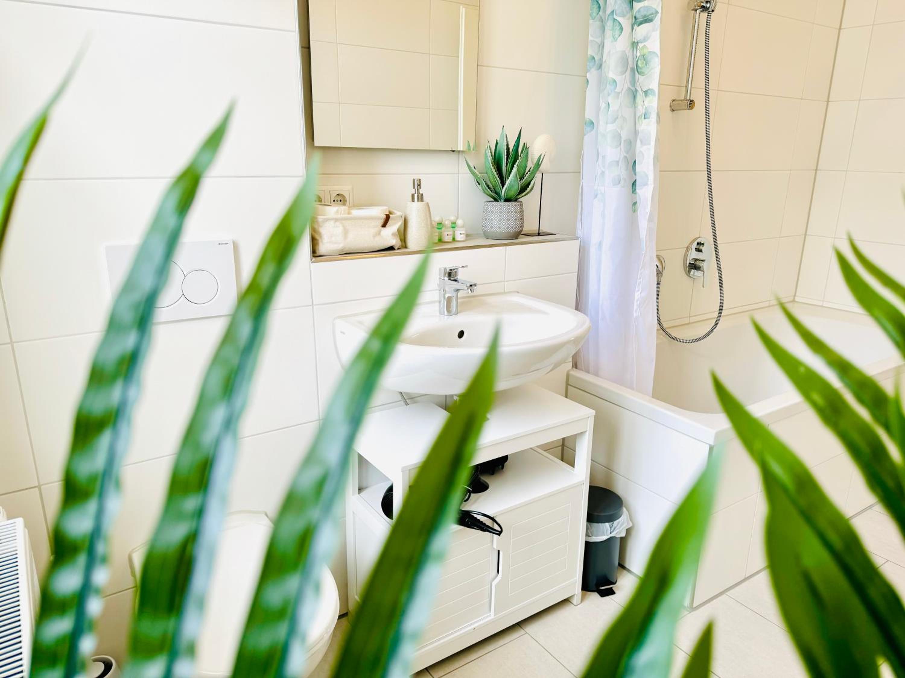 Nur ein Schlüssel und Eingangstür nur von innen mit Schlüssel zu verriegeln, da außen Klinke (bei bis 4 Personen schwierig zu handhaben). Nur Badewanne mit Duschvorhang (sehr hoher Einstieg). Ein Heizkörperthermostat im Wohnzimmer defekt, dauerhaft volle Temperatur. Sehr hellhörig und durch Monteur Belegung auch am Wochenende lauter.