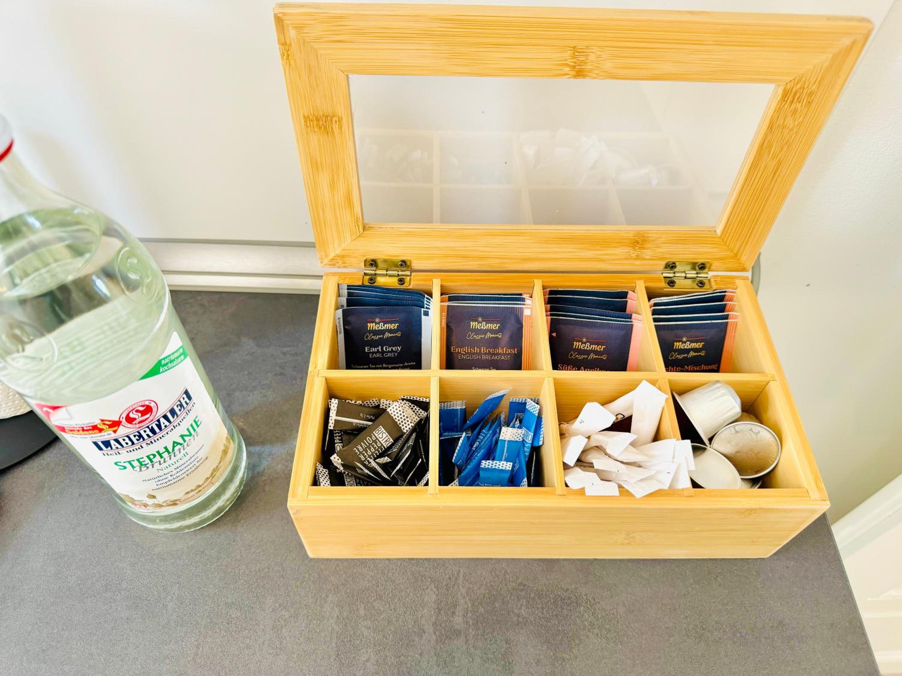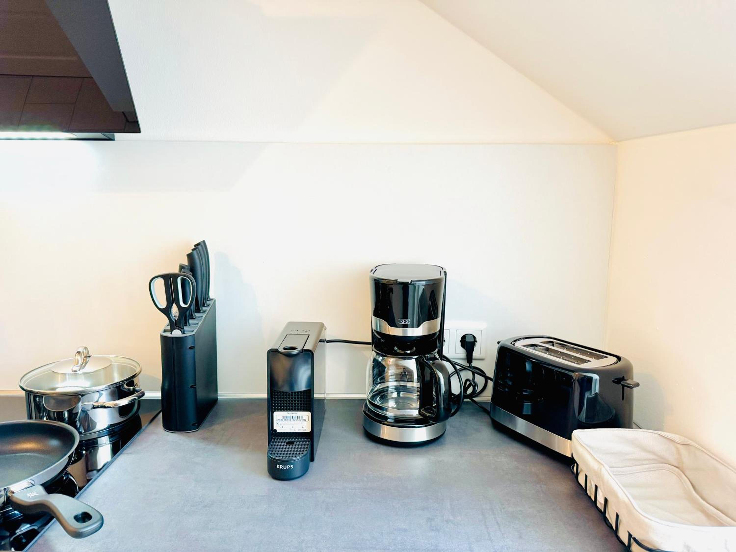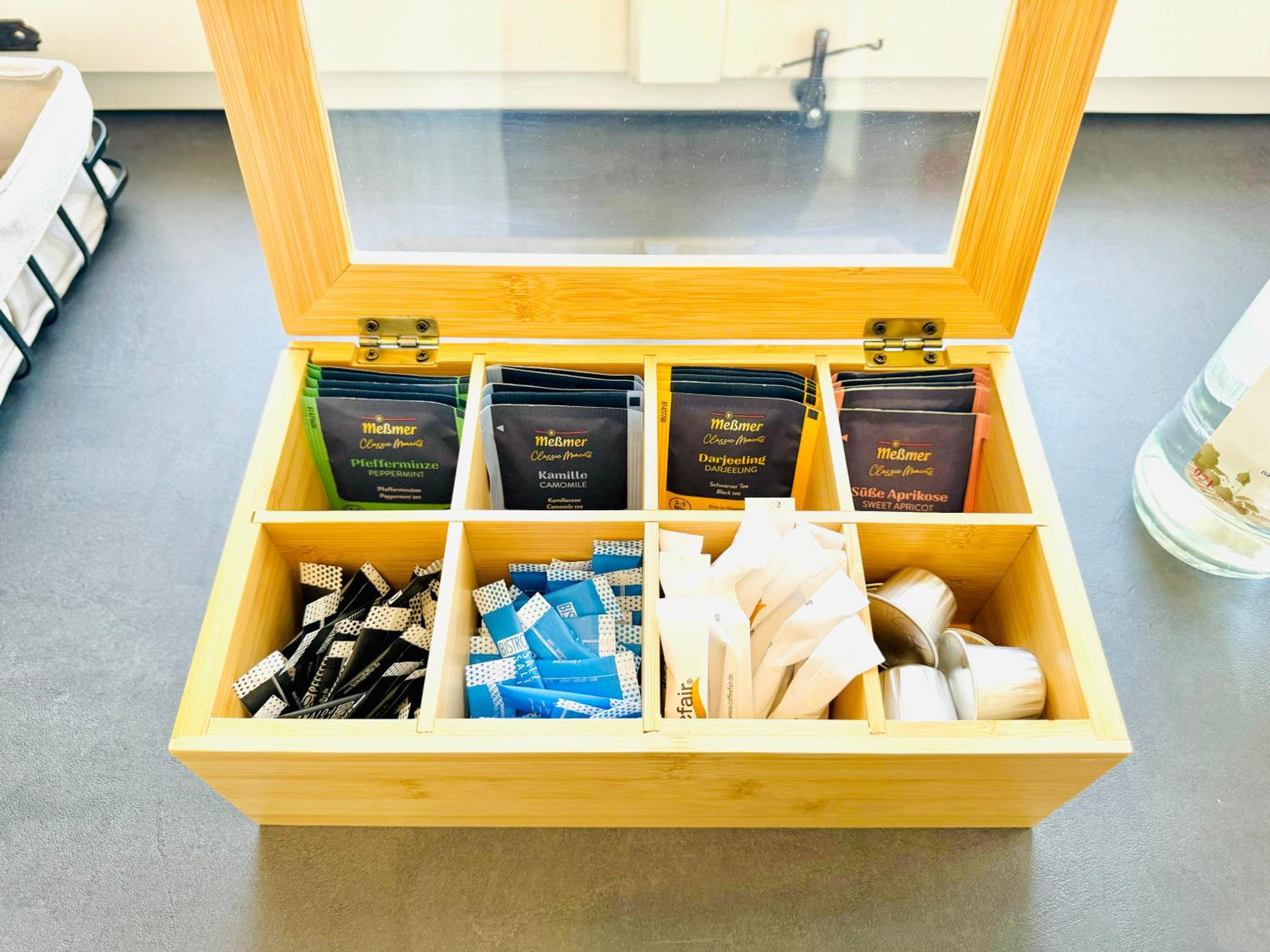 Das Zimmer war mit einer Nespresso-Maschine ausgestattet, jedoch ohne Espressotassen. Auch Zucker fehlte. Im Badezimmer gab es kein Duschgel. Lärm und Licht von der Treppe waren, insbesondere früh morgens, störend.