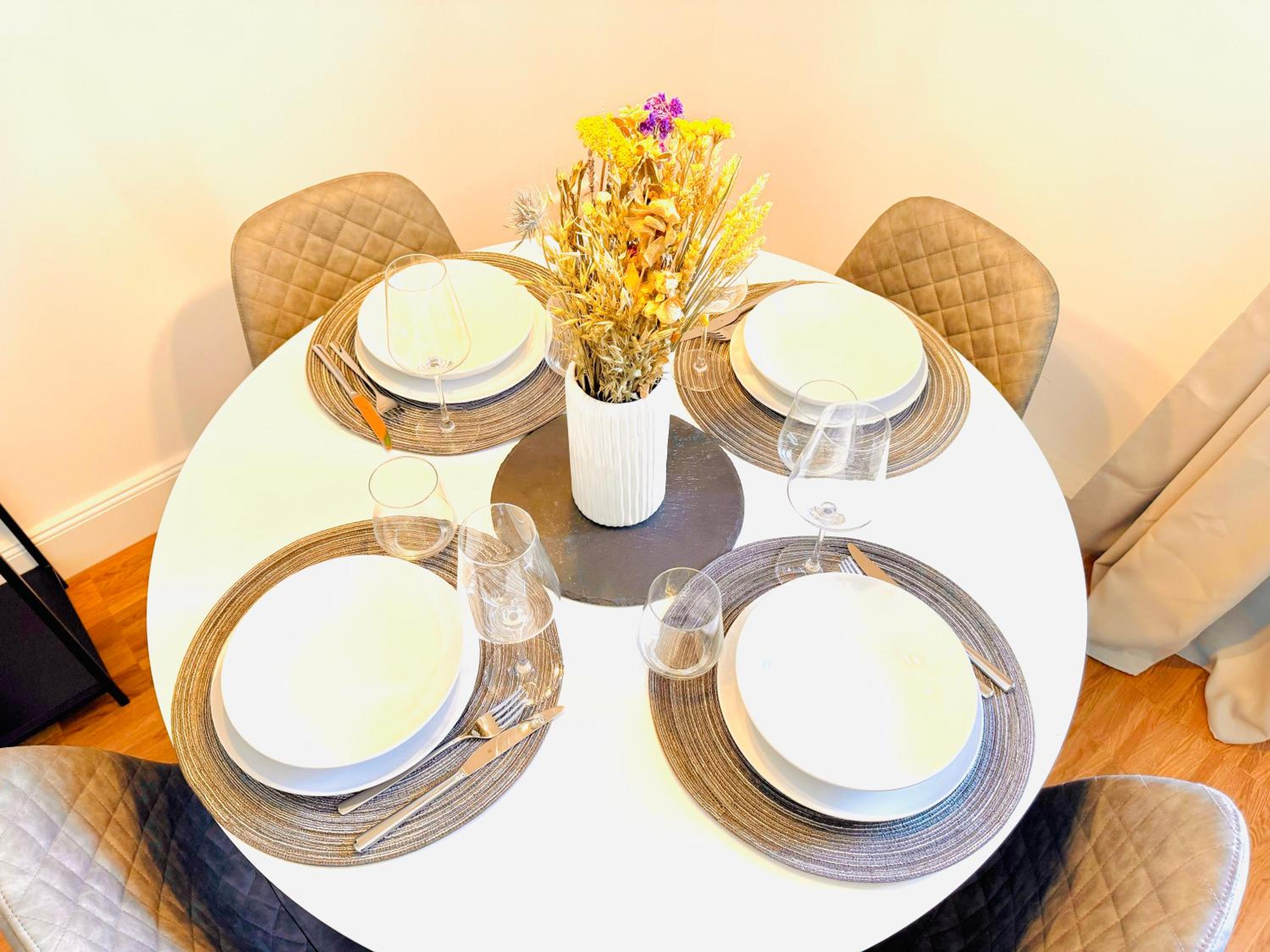 Awesome, everything nice and clean, washing machine and dryer free of charge, fully equipped kitchen. Comfy beds and huge flat TV. Parking could always be bigger ;)
