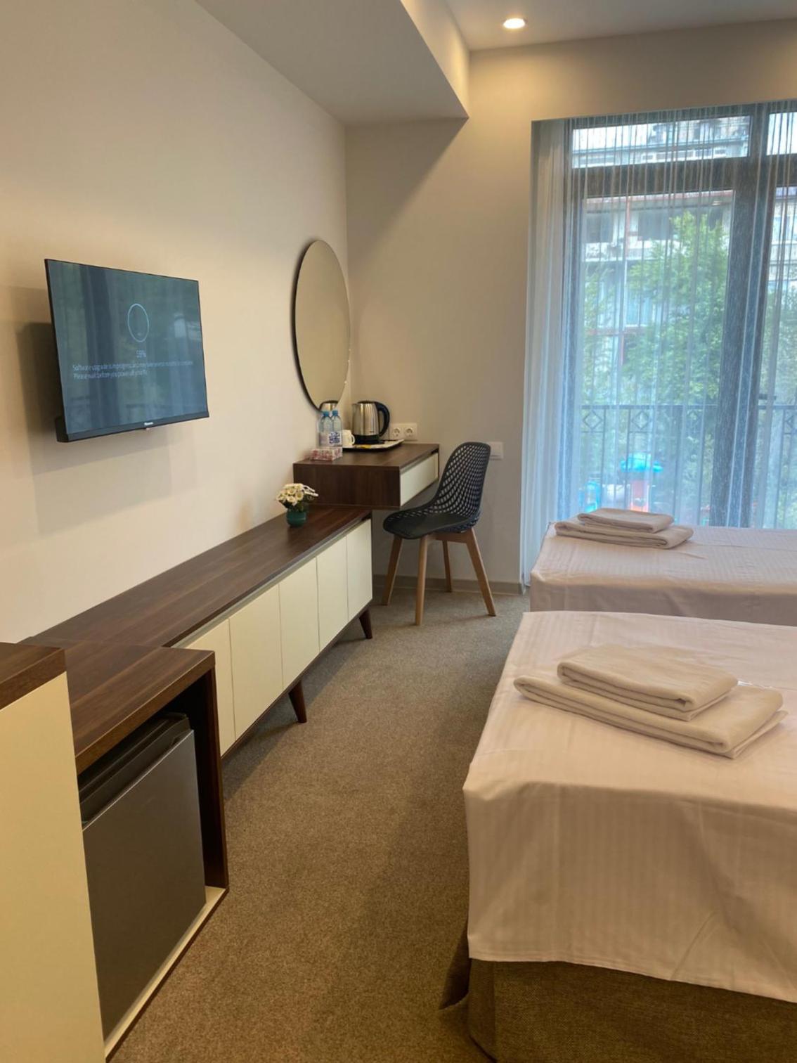 Отель в самом центре города. Вокруг много кафе и ресторанов. Рядом есть пункт обмена валют. Номер: Хорошая свежая сантехника, есть телевизор со смарт ТВ, холодильник, чайник, чай, кофе. Номер чистый, белье и полотенца свежие.