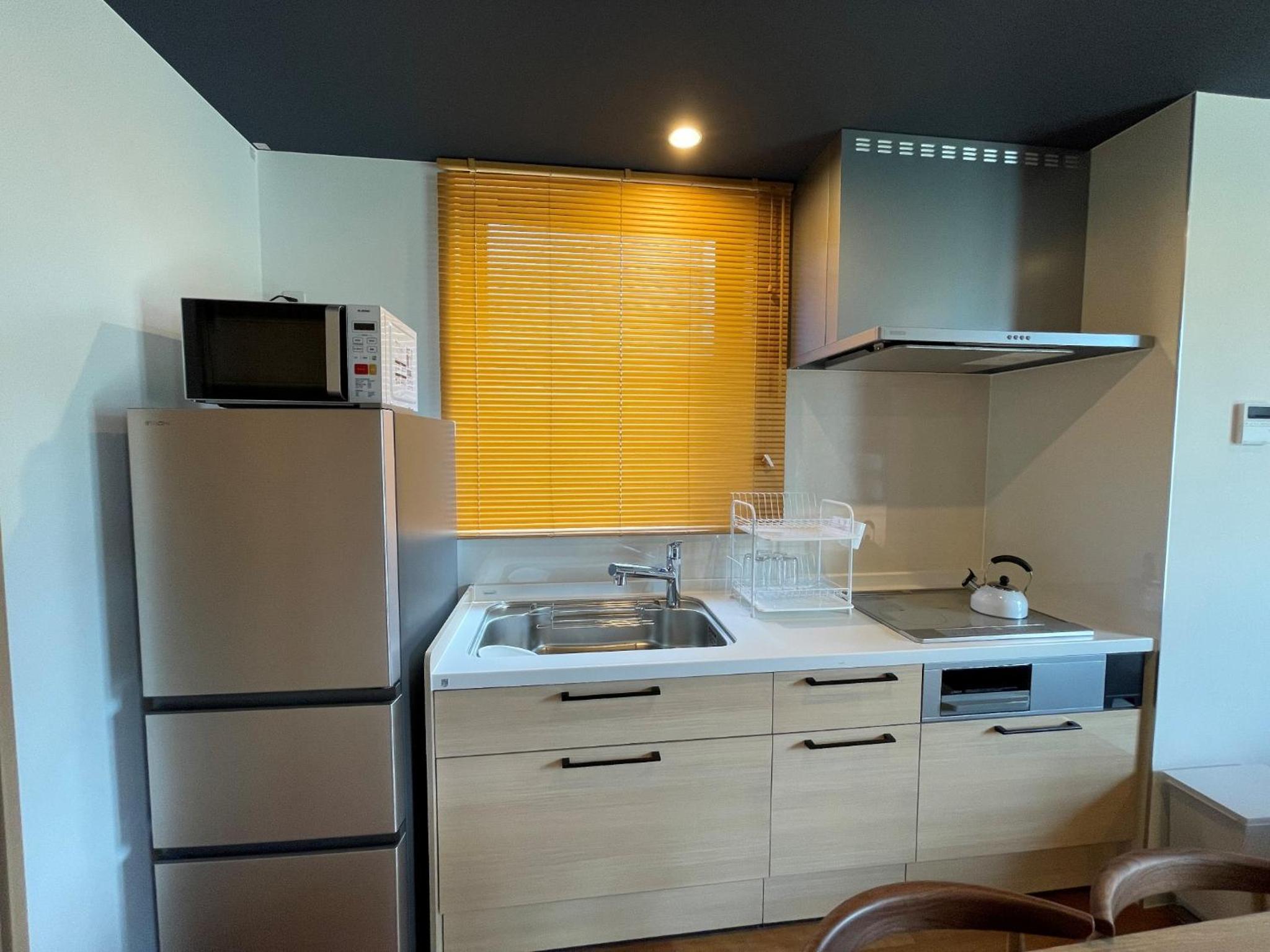 去箱根一日游的中转站。酒店式公寓,一共四层建筑,距离小田原车站、小田原城步行十分钟(阳台打开就可以拍摄到小田原城),距离网红海滩步行20分钟。一室一厅一卫,面积差不多有60平方,类似日本的一户建迷你版。带电磁炉、全套餐具(锅碗瓢盆刀叉等)、洗衣机(超级好用,带烘干功能),索尼的流媒体电视,提供了三套日式地铺床,另外客厅的沙发也可以打开睡觉。非常适合5口以内家庭入住。前台服务态度很好,英文很棒,很耐心的介绍如何进出房间、屋内各项设施的使用方法。全套的餐具、电磁炉、烤箱,食材可以去小田原站超市购买,早餐、晚餐自己做,和家人一起坐在餐桌吃,很温馨。