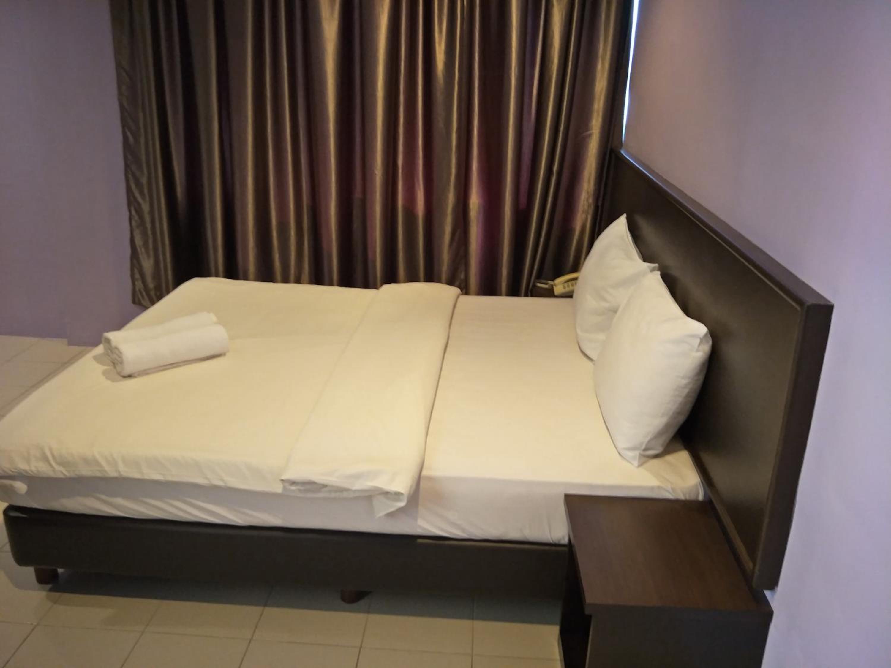 1.Kebersihan agak kurang memuaskan, cadar ada kesan kotor, tirai bilik lusuh dan sedikit kotor, tirai bilik air kotor