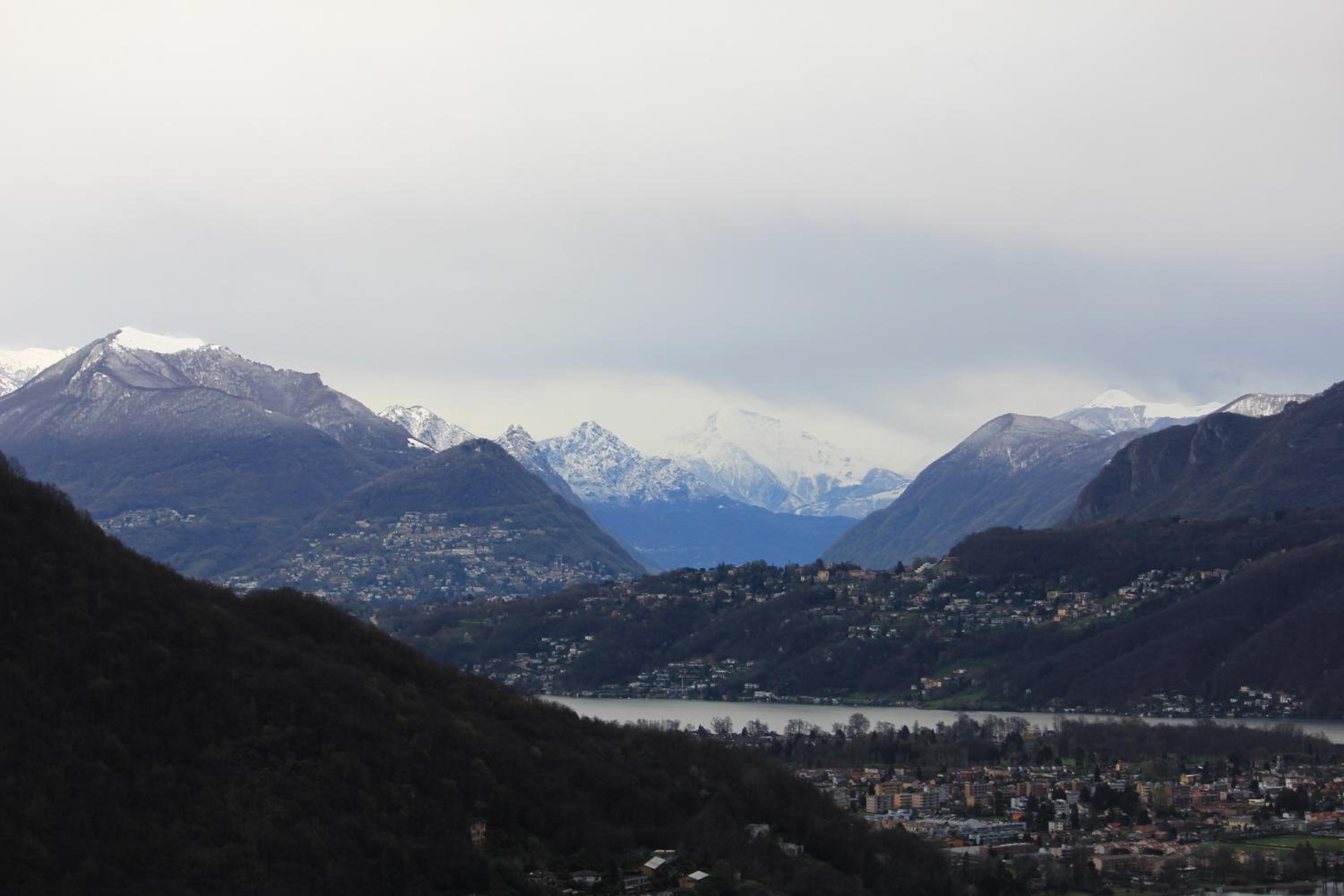 Très belle vue sur le lac de Lugano , la ville et les massifs enneigés 🤩
