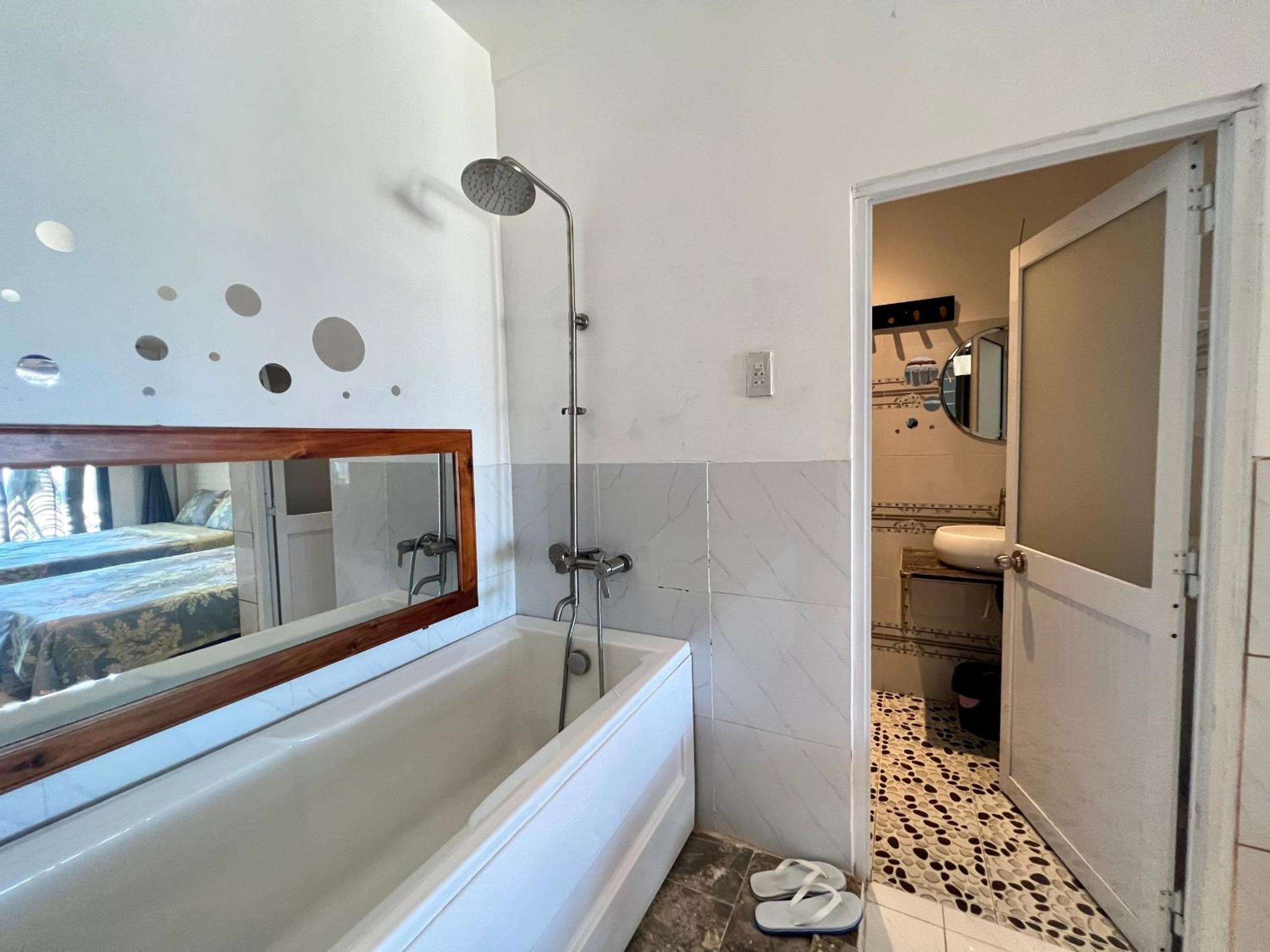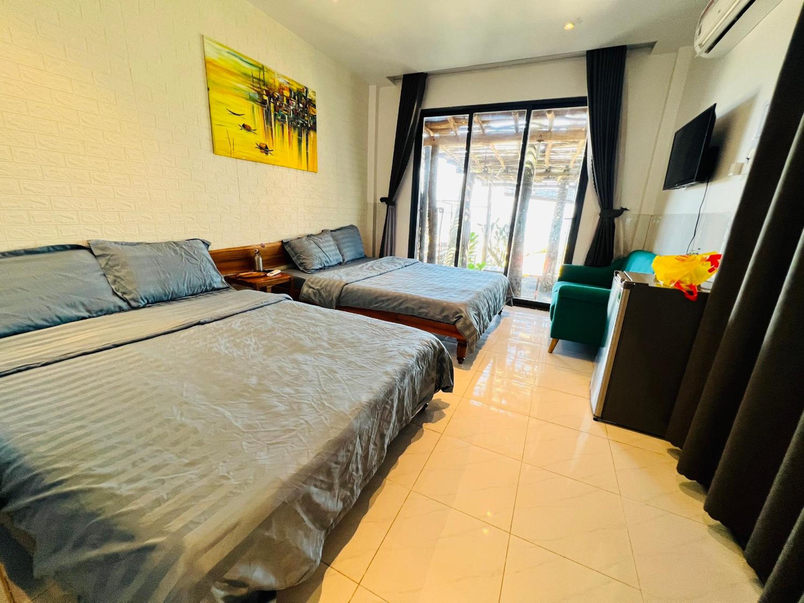 Номер на троих стоил 80 $. При поселении хозяйка попросила оплатить наличными , а не списанием по карте. Оплатили$ а сдачи отдали донгами при пересчете курс у нее свой в итоге мы не досчитались 500000 донг. В отеле мы пробыли 5 ночей. Уборка не производилась не разу. Полотенца меняли только по требованию. Вход в номер был со стороны пляжа поэтому весь песок был в номере , подметали сами. Сан узел это вообще отдельная тема. В одном помещении и уборная и душ без перегородки. Завтраков не было. По утрам выдавали по 2 кусочка арбуза. Не верьте фото в приложении. Через забор живет очень шумная семья и они любят петь караоке очень громко. По территории ходят соседские куры.
