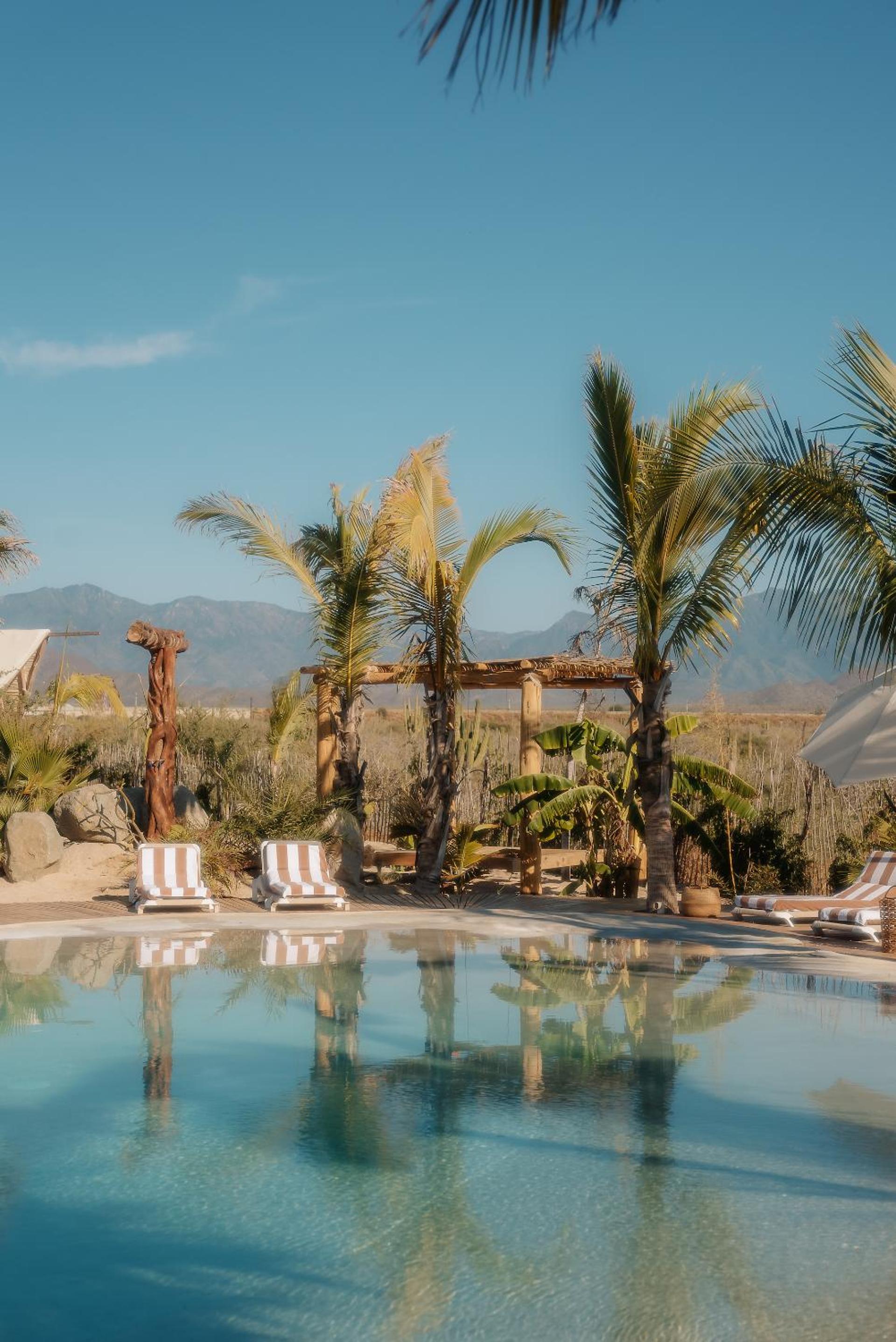 Tribu Pescadero, nestled in Todos Santos just 500 meters from Palm Beach, offers a tranquil escape with an outdoor pool, lush garden, and shared lounge. Indulge in room service and unwind on the terrace while enjoying breathtaking pool views from your private balcony.