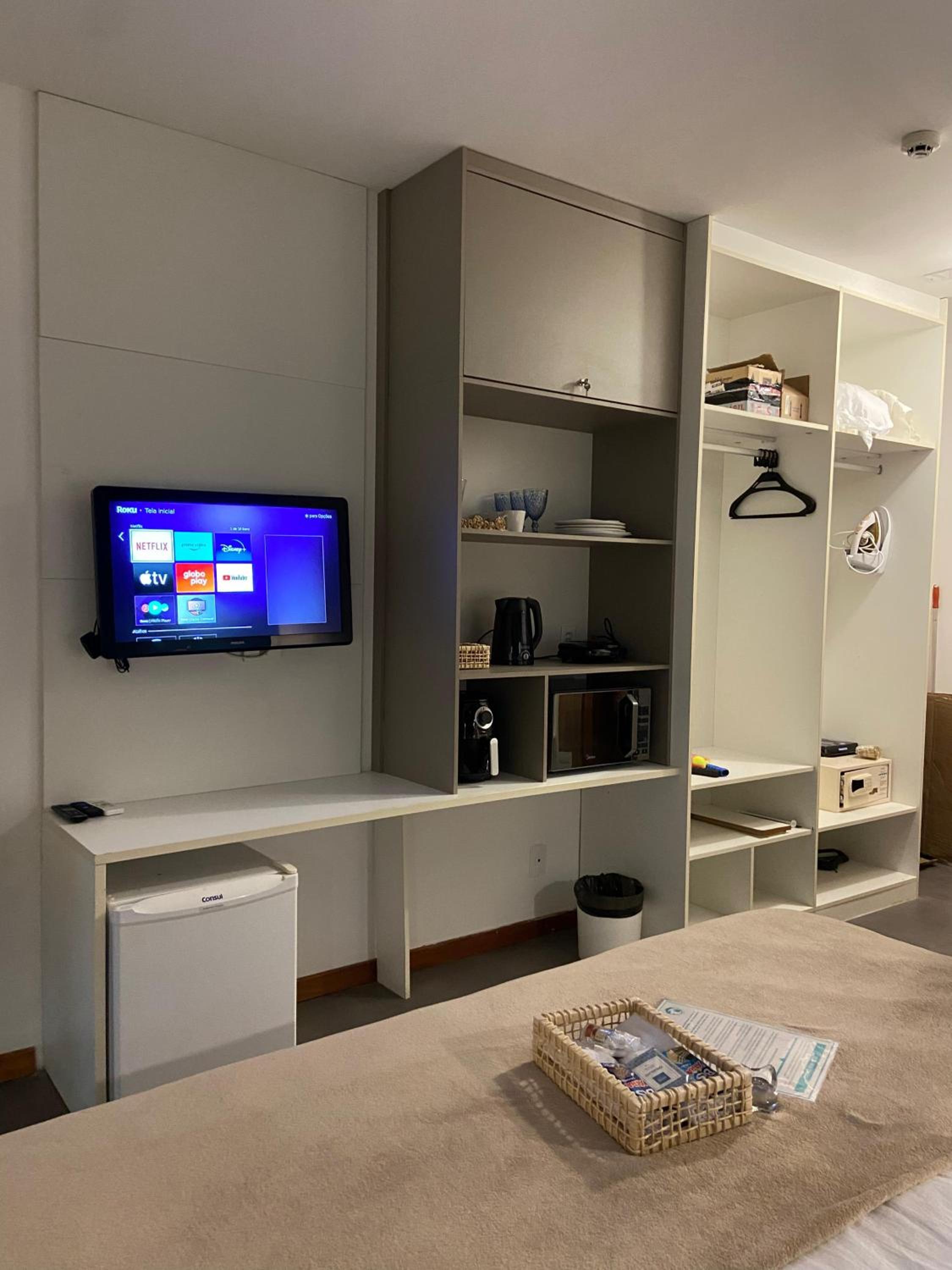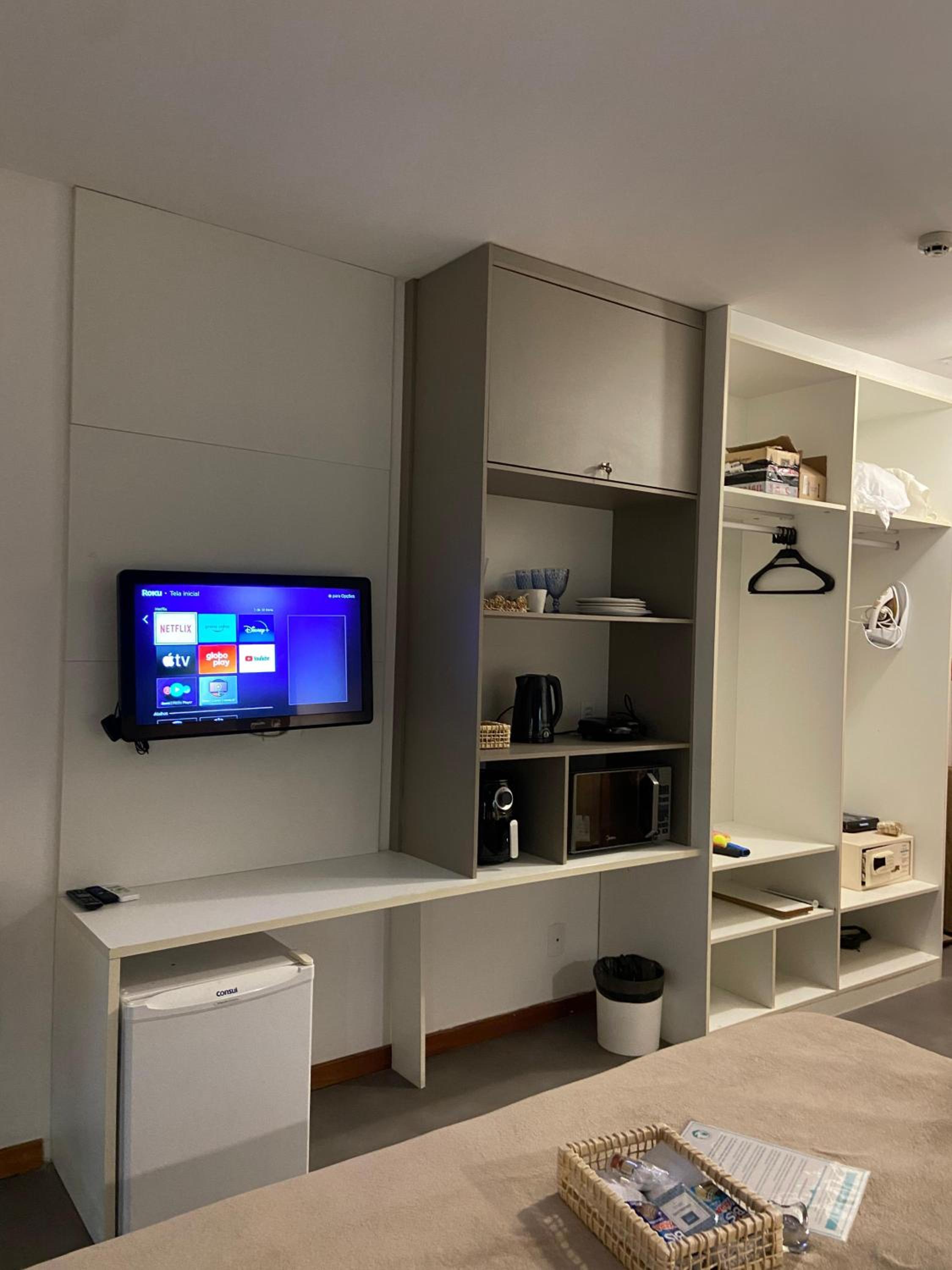 wifi não funciona nem no quarto, nem no condomínio; porta de vidro do quarto sem tranca (ficamos expostos com quarto aberto); muita mosquito; condomínio sem manutenção com pisos quebrados; longe da praia e centro; quarto sem limpeza por 4 dias