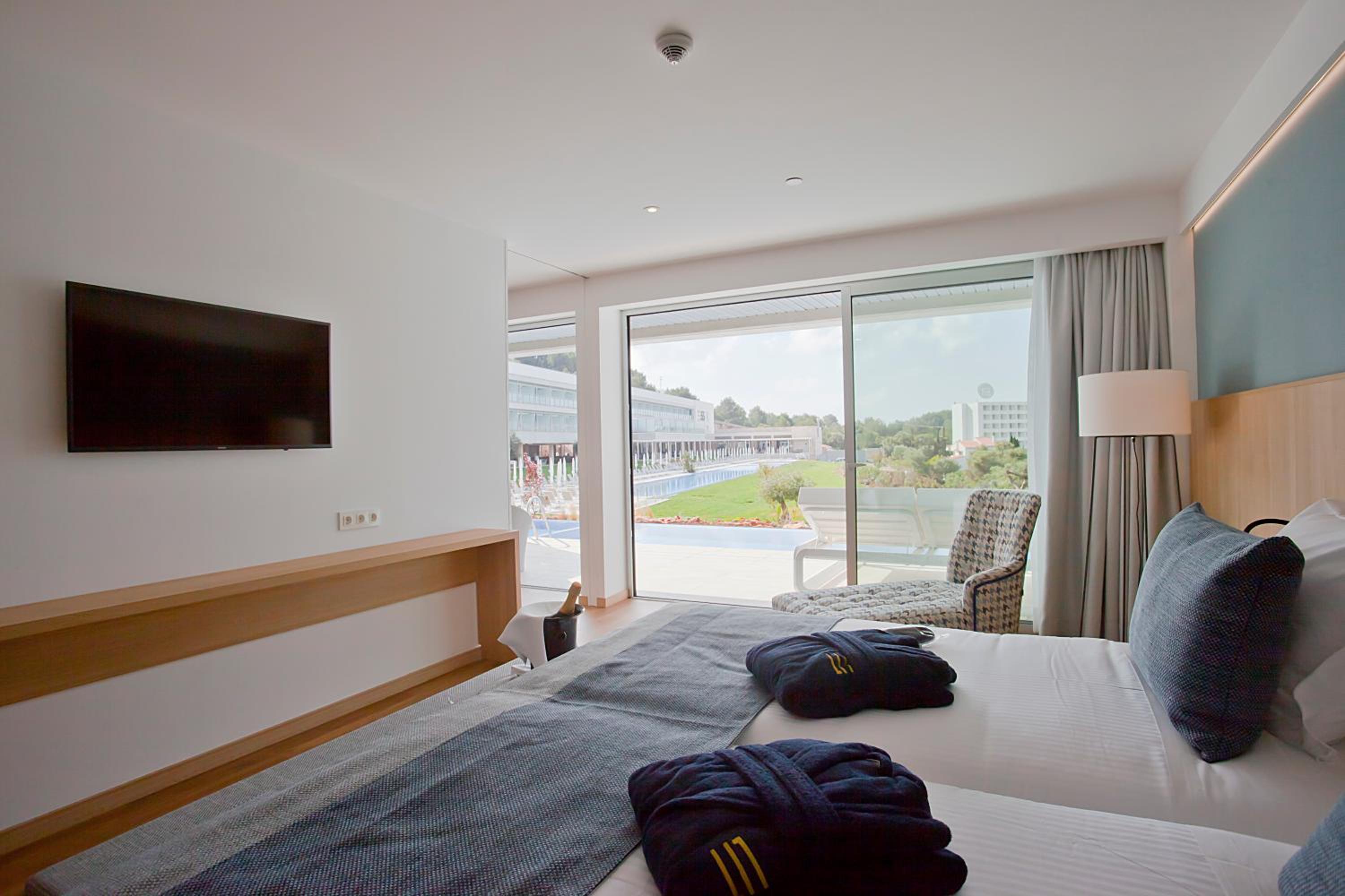 Hôtel magnifique, bien situé géographiquement, confortable, très calme et reposant, belle chambre bien insonorisée sur l arrière avec vue sur les pins, propreté impeccable, très bonne literie, piscine magnifique, ensemble du personnel chambre-restaurant-réception très agréable et aux petits soins, location voiture par bureau sur place faite en 5 mn bon prix, sans caution et parking gratuit à côté, petite épicerie, pharmacie, restaurant et belle plage à côté, restaurant hôtel avec beaucoup de variétés et excellents produits dans l ensemble. Petite animation musicale le soir. En prime : quelques oliviers remarquables !