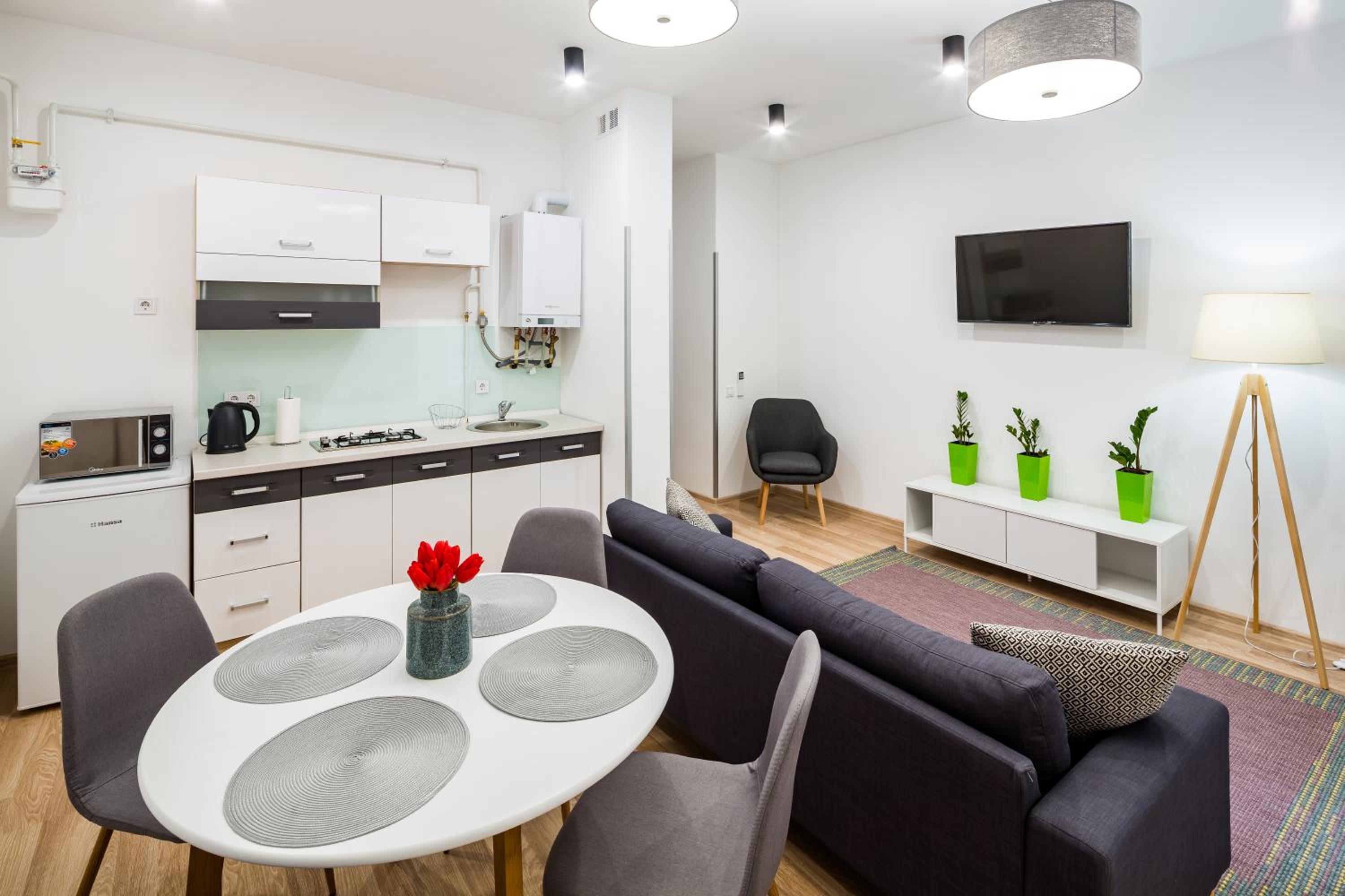 Приветливый, гостеприимный персонал, уютная квартира, удобная кровать, чистое постельное белье, красивый дизайн квартиры