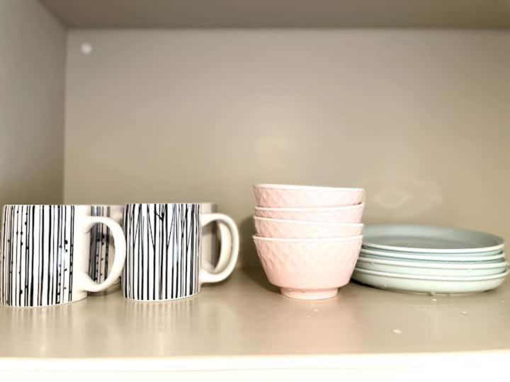 Not too many eating utensils available. Only small plate (3) and 4 small bowl