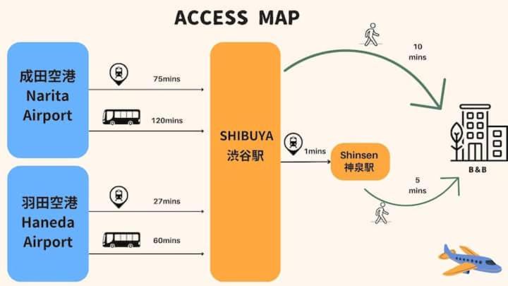 Excellent location, near many restaurants, bars and about 10 minutes walk from Shibuya station. The owner was helpful and assisted asap with all our questions. We were 4 guests, and the space was just enough for us, a big bedroom, a big bathroom and a somewhat tight kitchen/corridor. The room was clean and overall satisfying. A good value for money.