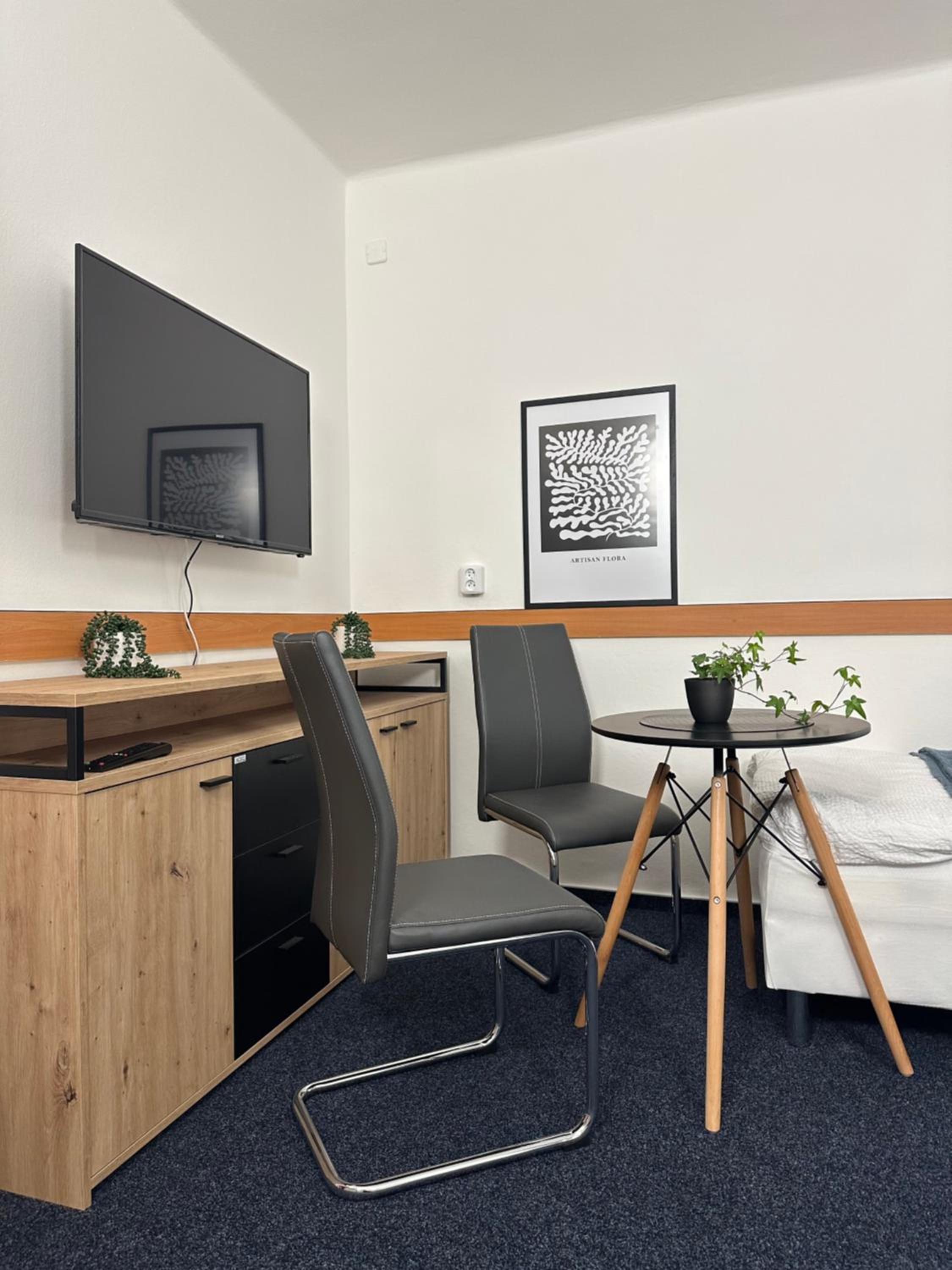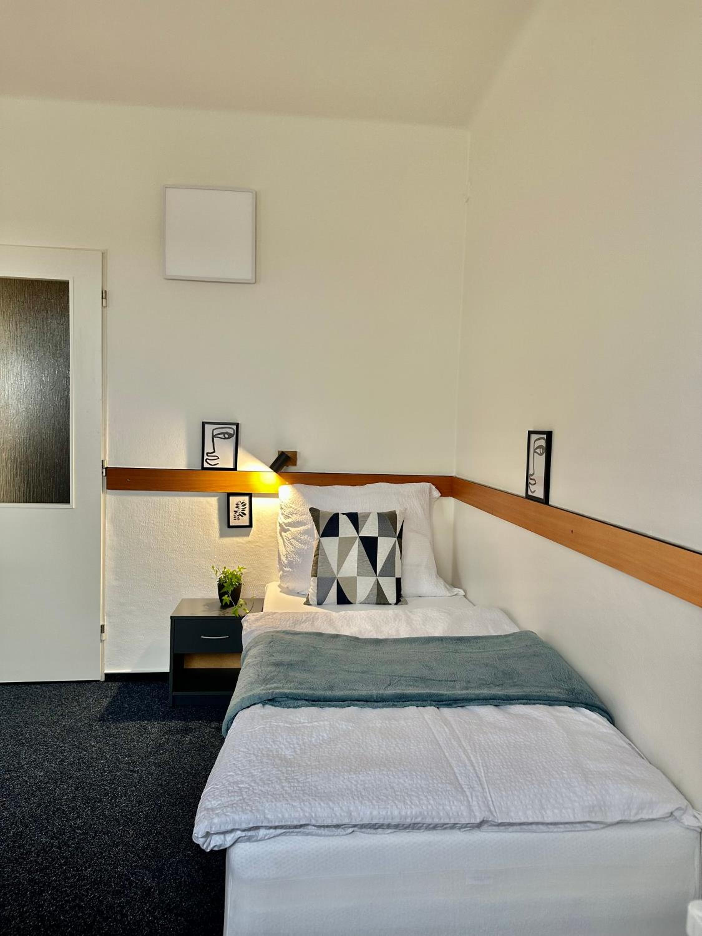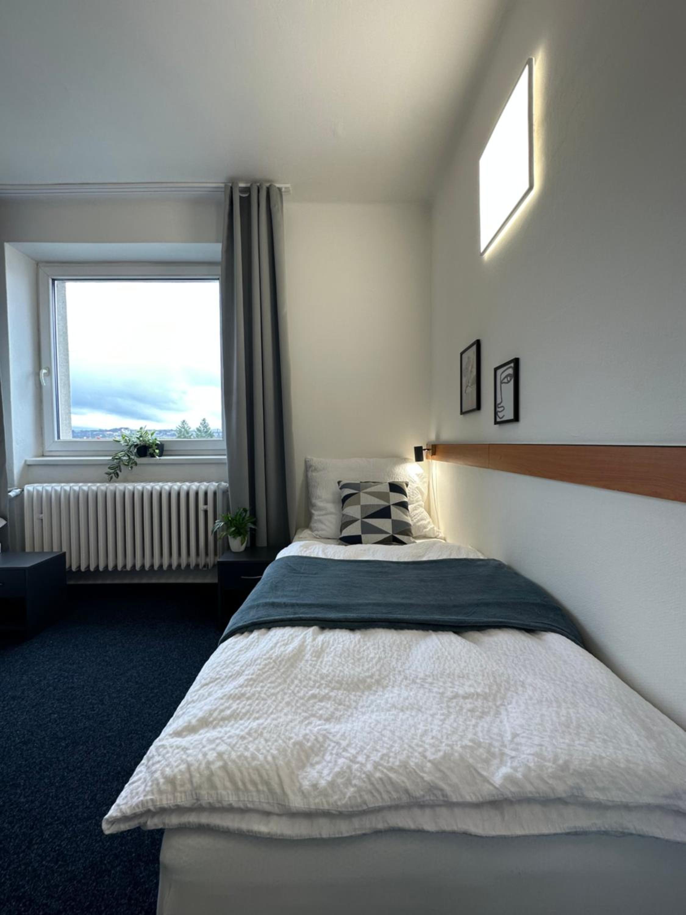 Ubytování je těsně po rekonstrukci, čisto, žádný hluk. Výhodou je jistě bezplatné parkování, snadný check-in s instrukcemi do sms. Do centra města 10min pěšky a stejně tak na fotbalový stadion. Klidná ulice s výhledem na rodinné domy.