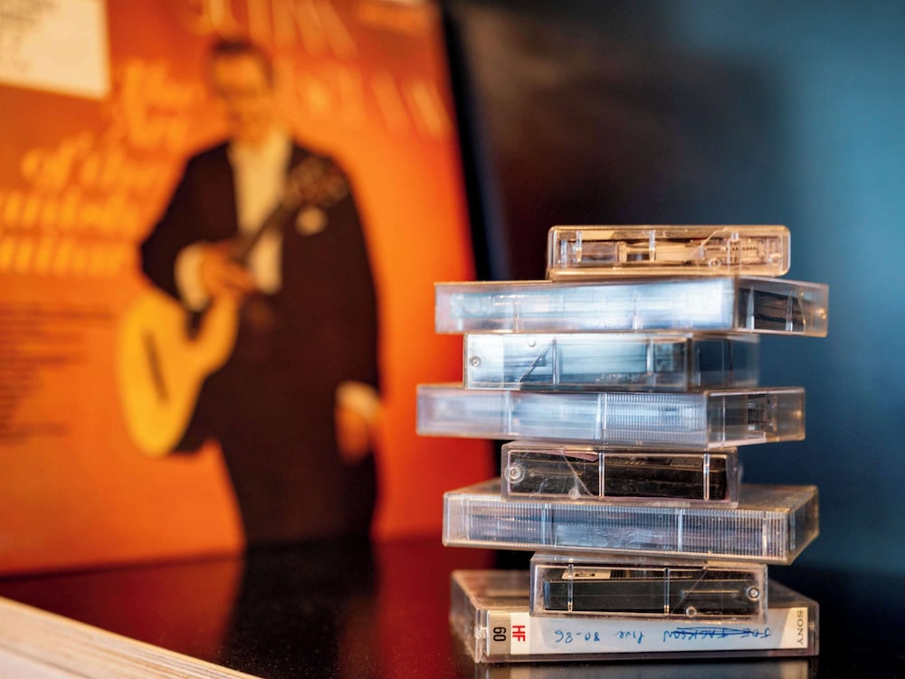 Hotel a tema musicale, con molti manifesti e locandine anni 80.