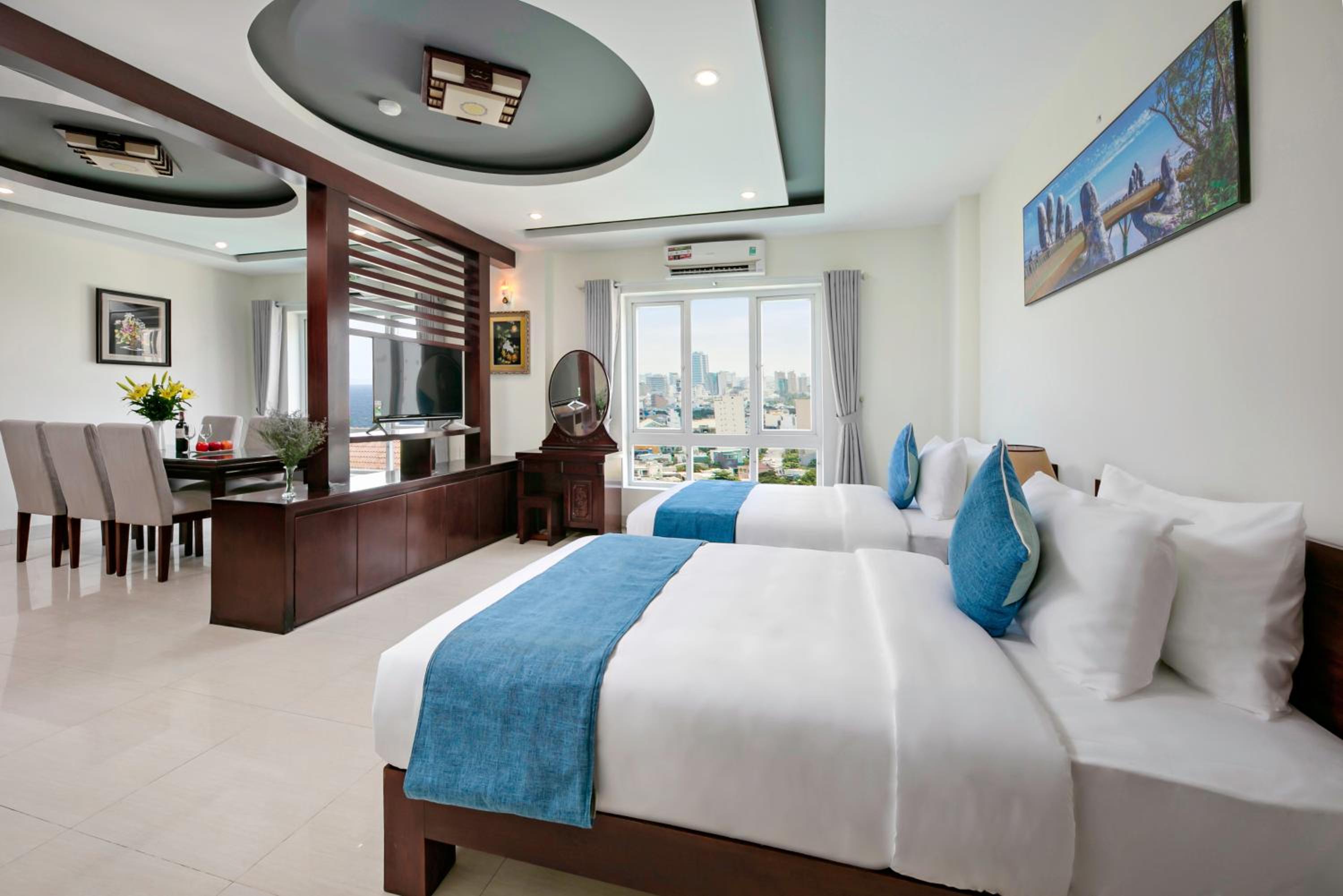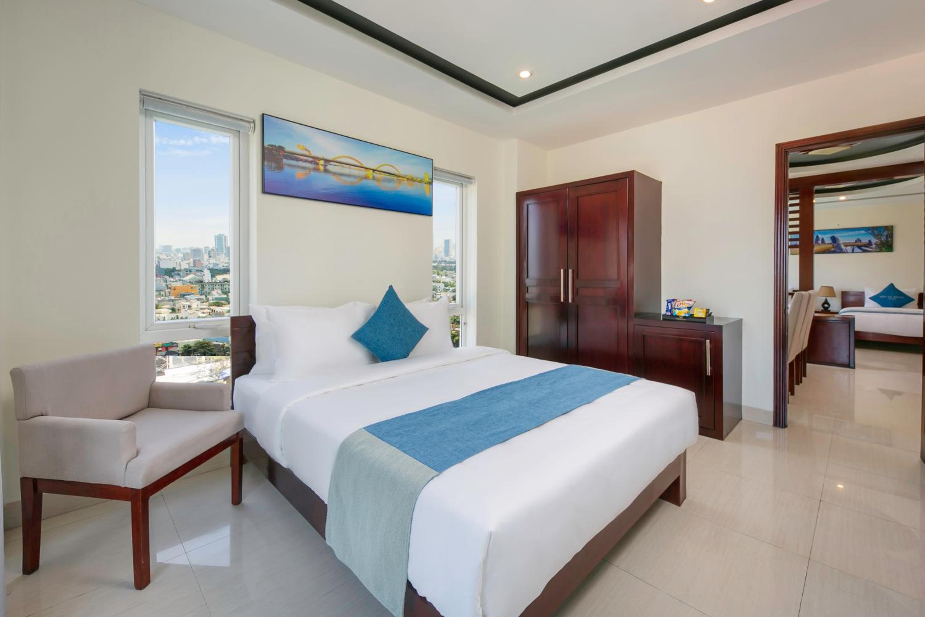 Gio Bien 2 Hotel by THG, nestled in Da Nang just 300 meters from My Khe Beach, offers a serene retreat with a garden, free parking, and modern amenities. Indulge in comfort with air-conditioned rooms featuring flat-screen TVs, free WiFi, and city views.