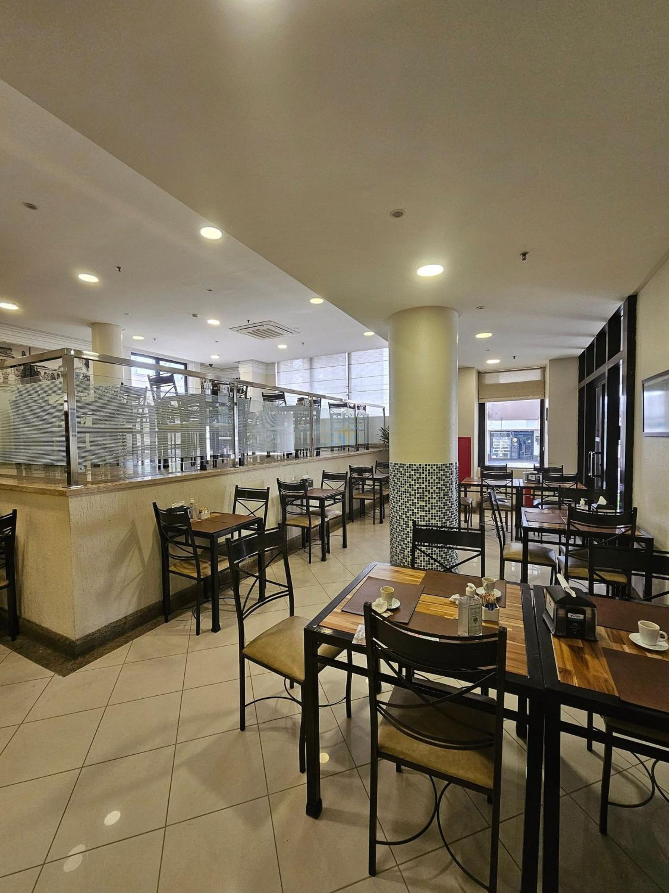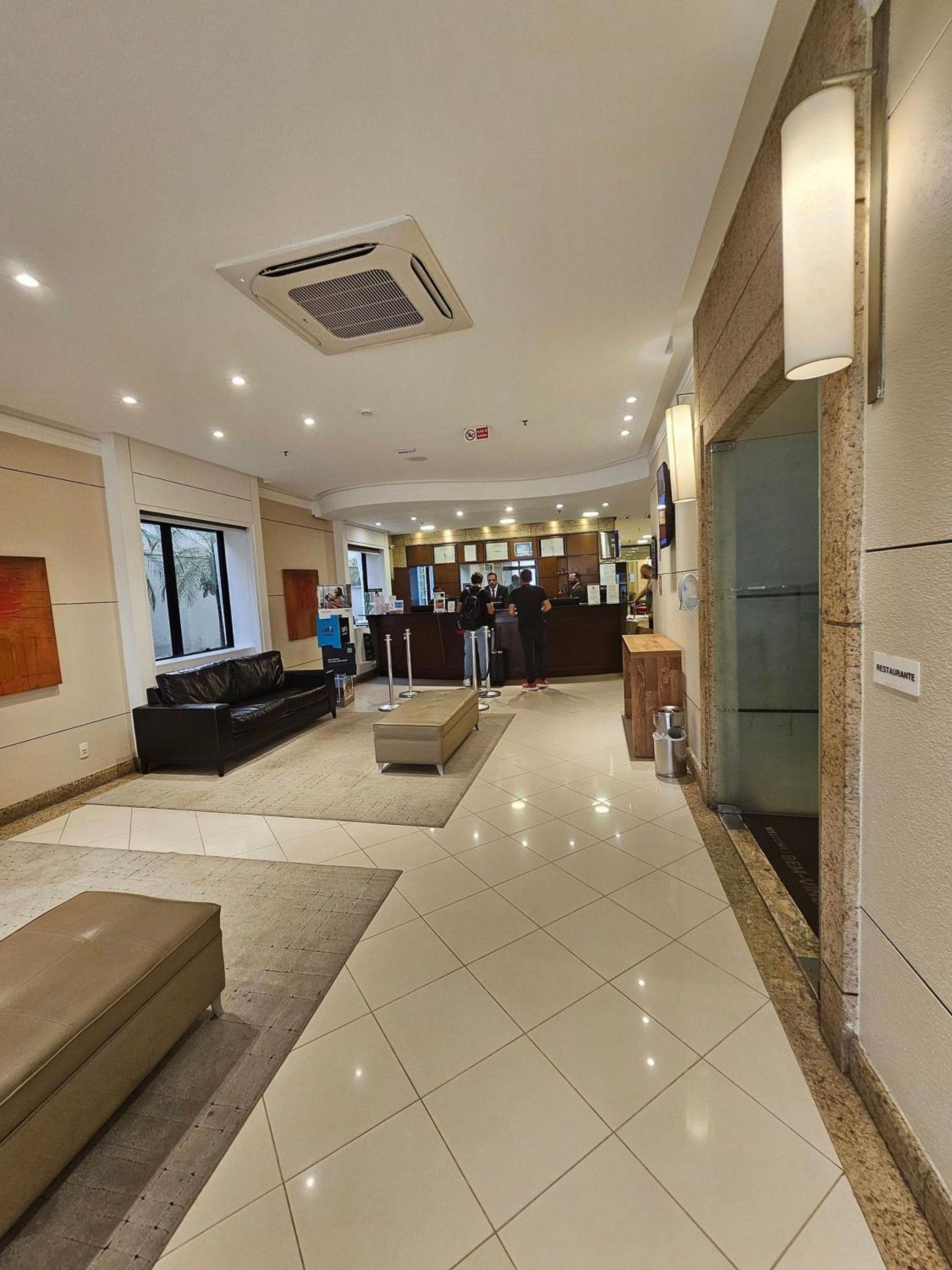 Fica no hotel transamerica então tem restaurante, serviço de quarto, o quarto tem um bom tamanho, e mesa de trabalho, a cama é grande e confortável com bons travesseiros, deram 2 aguas de cortesia, e alguns cafés em capsulas.