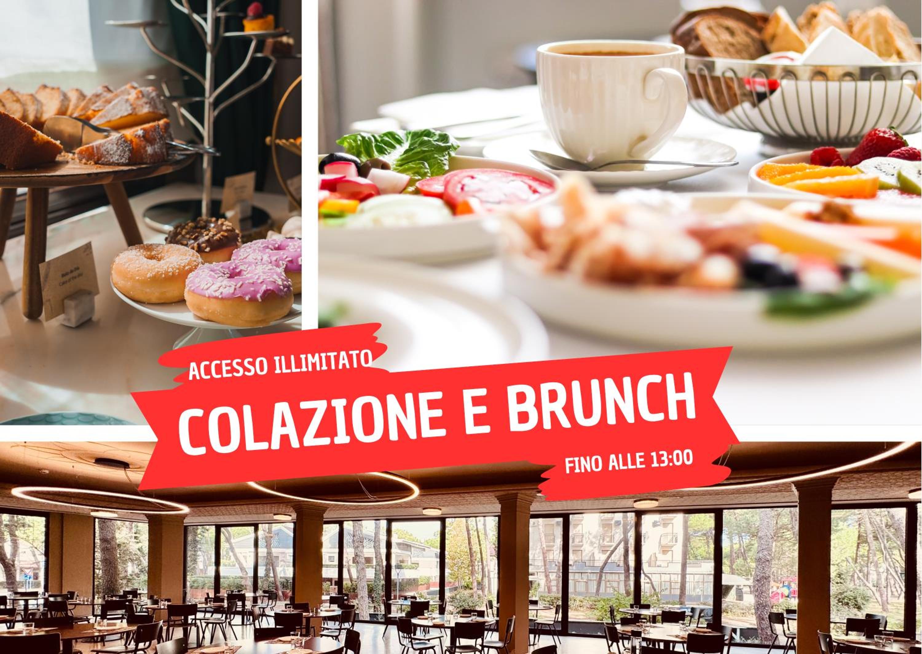 Colazione abbondante di buona qualità e varia. Ottimo servizio di colazione e brunch offerto fino alle 13.