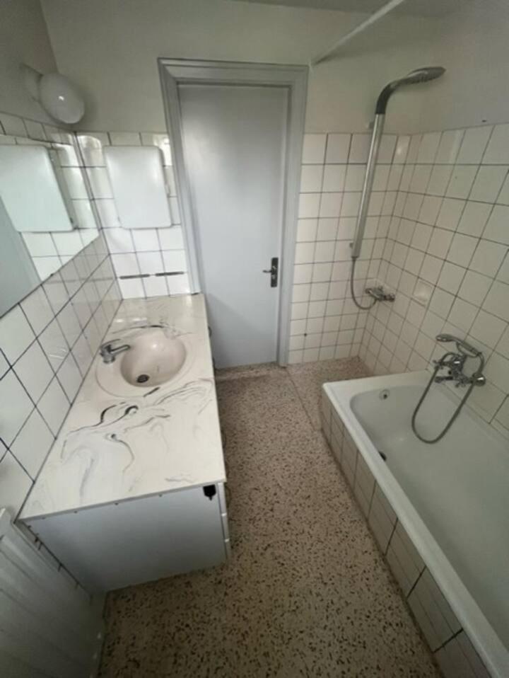 Die Sauberkeit in der Gemeinschaftstoilette. Das Waschbecken verdreckt und verrostet.