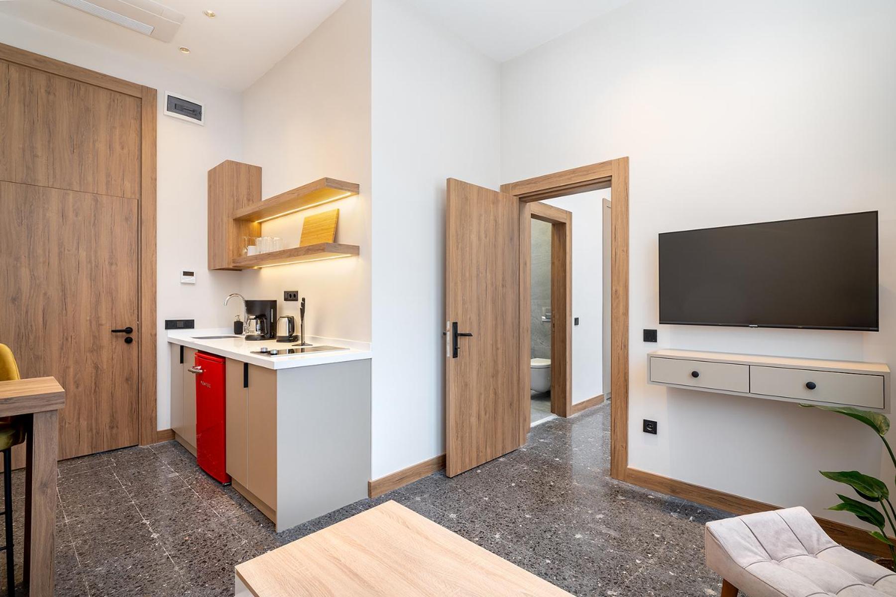 I really liked the location — it’s just a few minutes’ walk from the tram station, and there are great shops and cafés nearby. The apartment has a small living room, a kitchen, and a terrace, and the bedroom was comfortable as well.