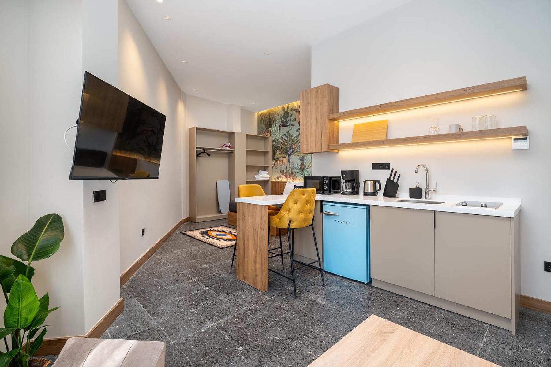 Весьма комфортная квартира. Новый ремонт, кровать и диван не скрипят. Большинство наших просьб оперативно удовлетворялись (дополнительное одеяло и пододеяльник + устранение засорившейся трубы). Приятный заезд и выезд без необходимости взаимодействовать с кем-либо. Расположение меня полностью удовлетворило (ходил в центр через Золотой Рог пешком, хотя можно воспользоваться трамваем), однако для супруги подъем на Истикляль весьма резкий. Спасибо за приветственную бутилированную воду, чайные пакетики и сахар. С террасы наверху открывался хороший вид на новогодние салюты.
