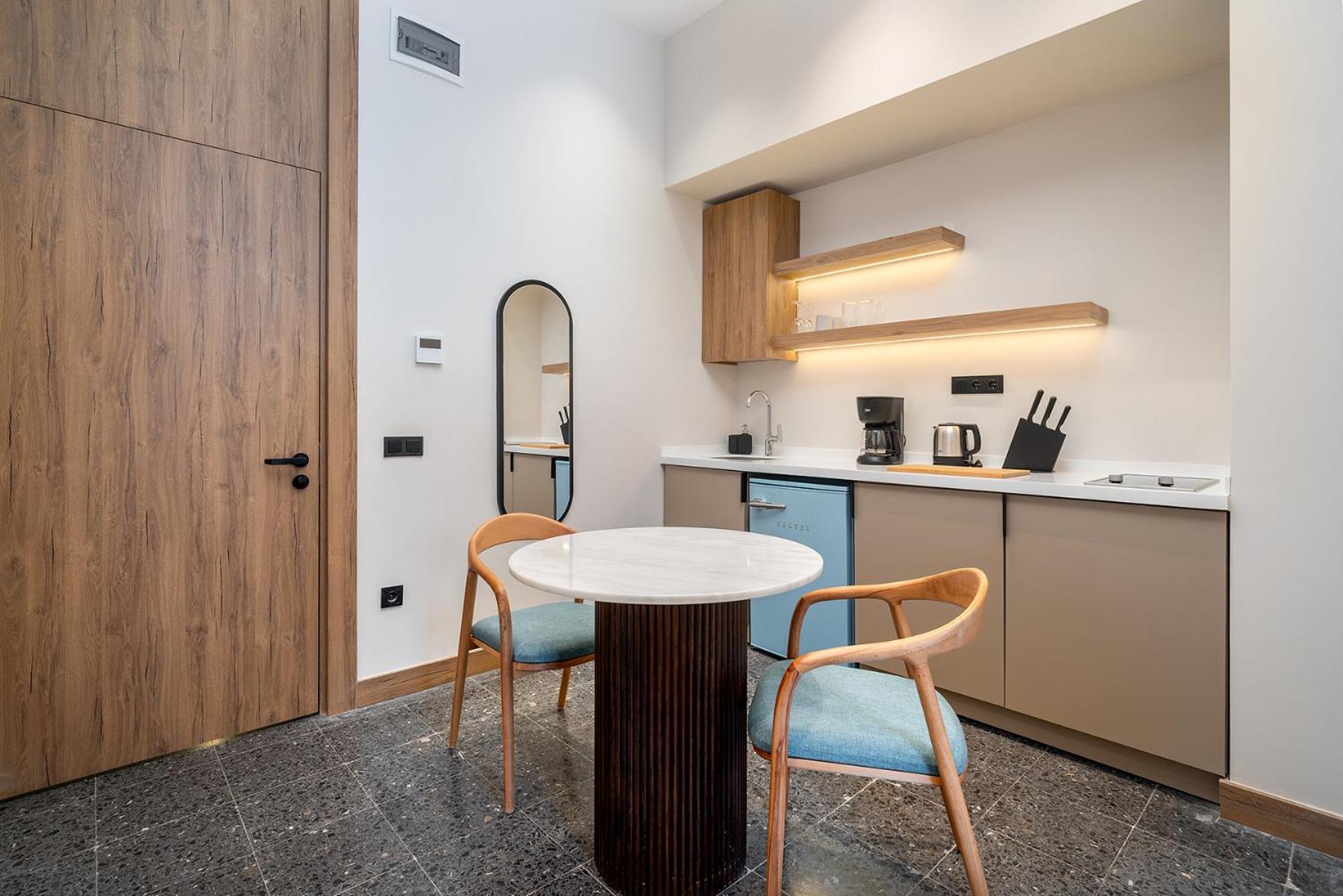 Заселение было предельно простым. Сами апартаменты находятся в отдельном здании, вводишь код и входишь в urban quarters, а на этаже открываешь с помощью приложения и телефона.