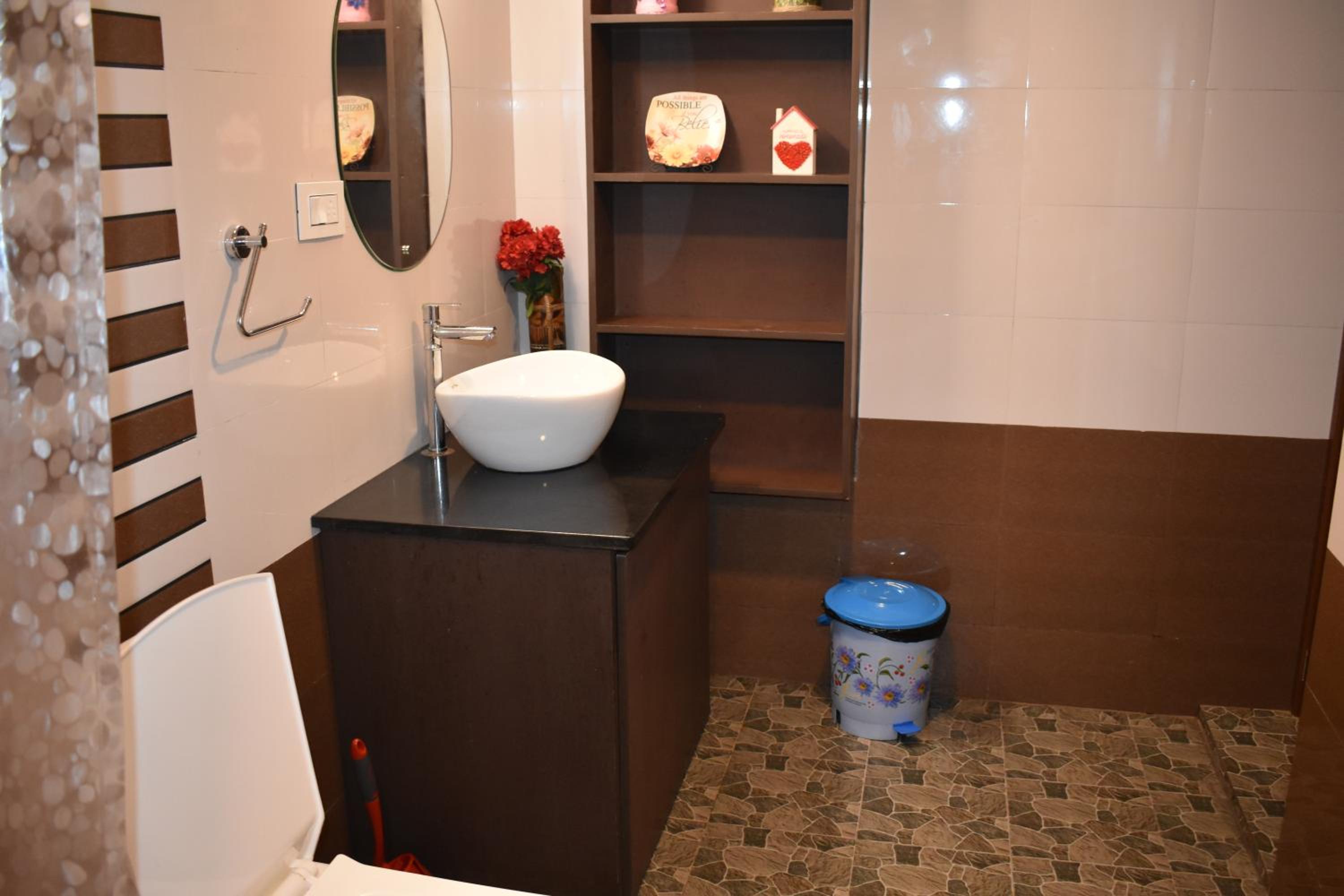 We had a pleasant stay in this 2 bedroom unit - accomodation is 2 bedrooms inside the villa with attached bathrooms in upper level. The villa is nicely maintained and there were multiple sitting spaces in balcony with benches/chairs; we could enjoy dinner at night tea/breakfast in the morning. Owner can provide homely food if you could pre-order. Also, Swiggy delivers in this address. Villa is not exclusive to guest, there was an additional bedroom upstairs occupied by an unknown guest and owner was living downstairs. This did not affect our stay in anyway, we could stay in peace in our bedrooms and also enjoy well furnished common balcony area. Thanks to Ben, her Mom and family.