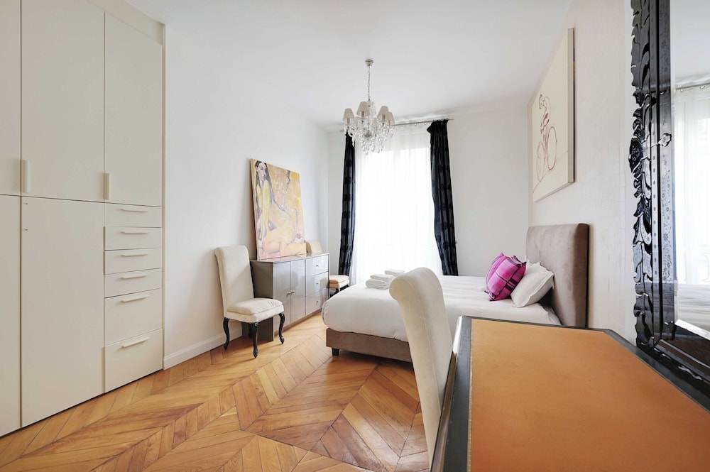 Within walking distance to famous landmarks such as Champs-Élysées and Eiffel Tower. Also close to Rue Cler and Place du Trocadéro for shopping and sightseeing.
