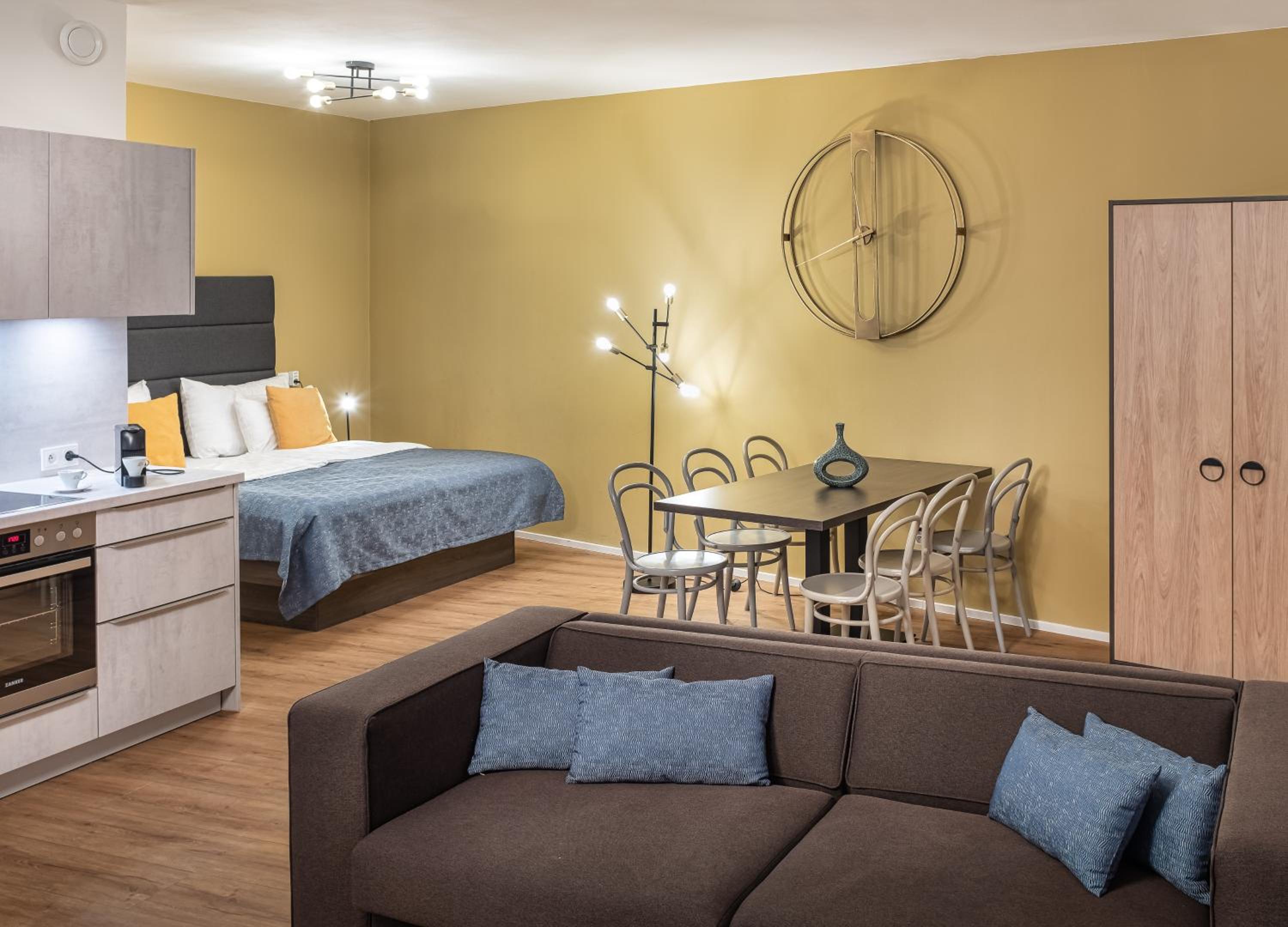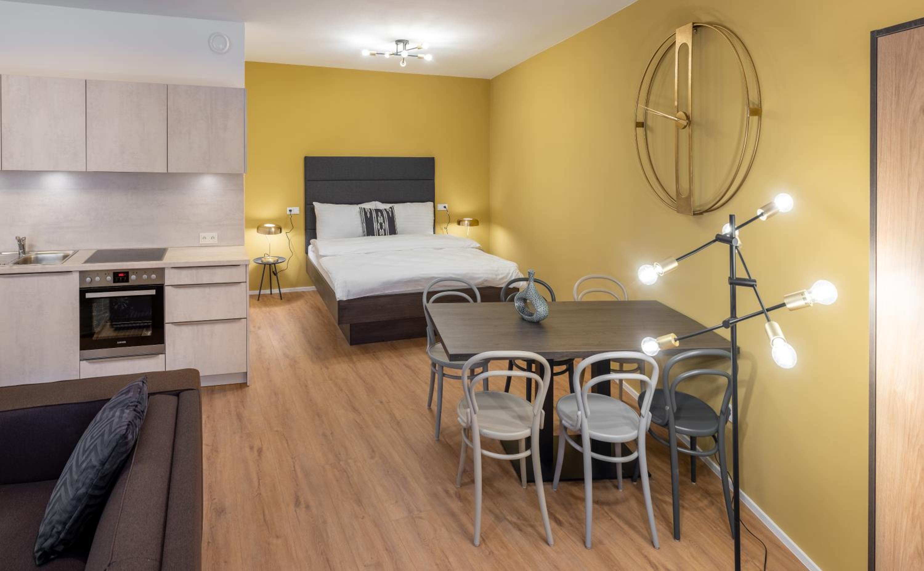 Our allergy-free rooms and family suites are designed for your comfort and convenience. Each unit features a fully equipped kitchen, flat-screen TV, and free WiFi. Relax in the spacious seating area or unwind on the balcony in select rooms. We provide everything you need for a relaxing stay in Prague.