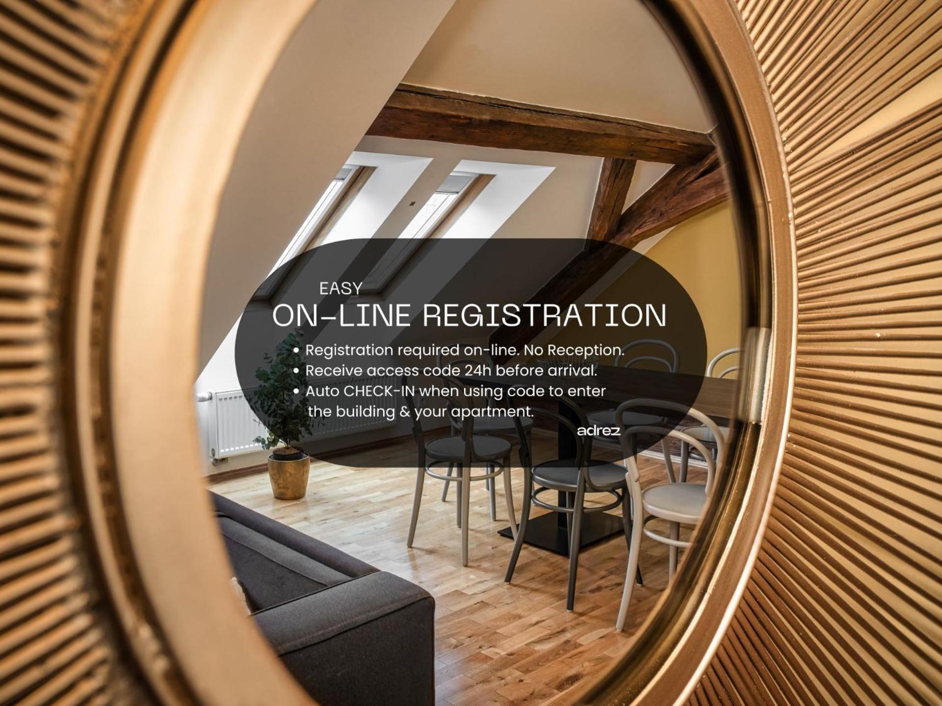These apartments are fully online with no Reception. You will receive a link to fill in personal details for all in your reservation then receive a code for the apartment after payment. The alternative is to visit our central Reception at the Hotel "Palác U Kočků" (Palace At the Cats).