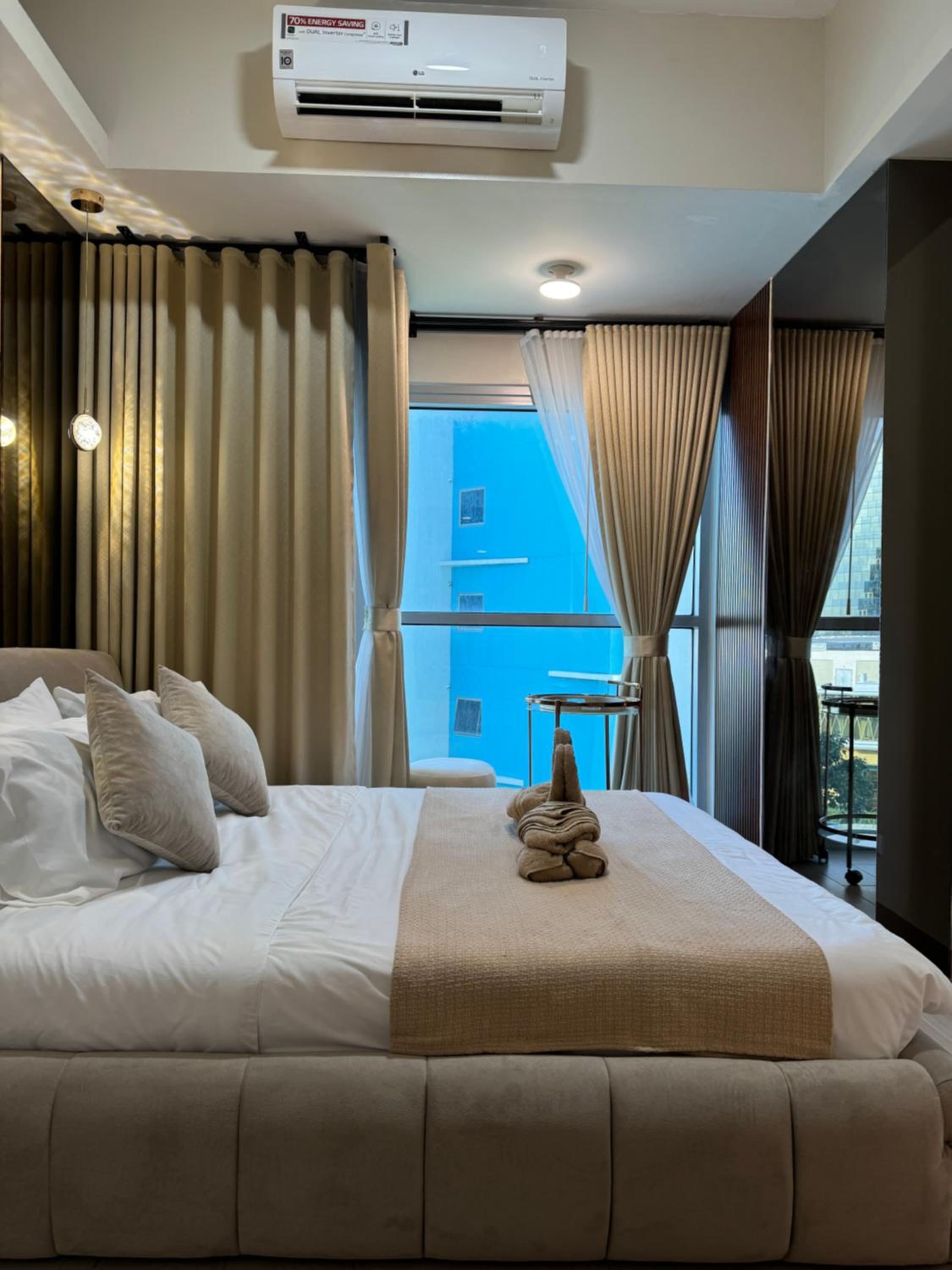 Featuring a pool with panoramic bay views and a private balcony, Stylish 1BR Near Airport Facing the Bay - 7b offers a luxurious stay in Manila. Enjoy the sea breeze and breathtaking sunsets from the comfort of your room.