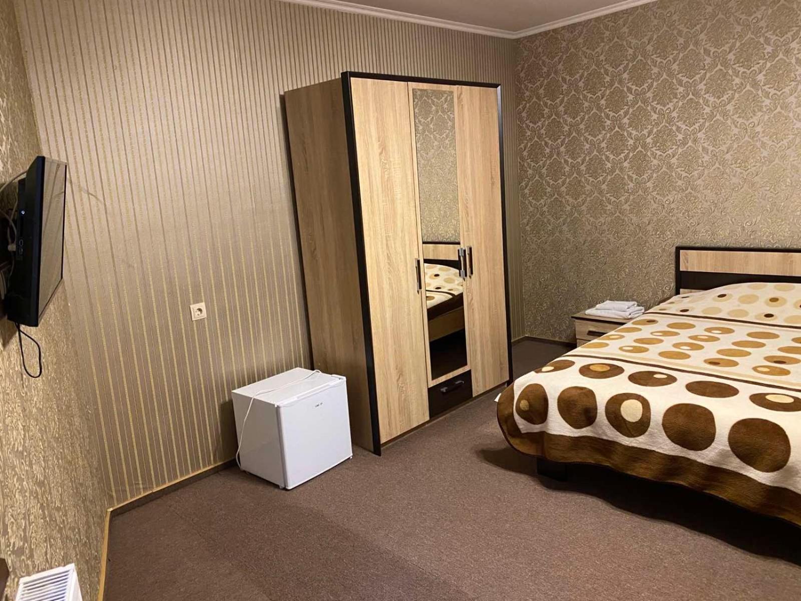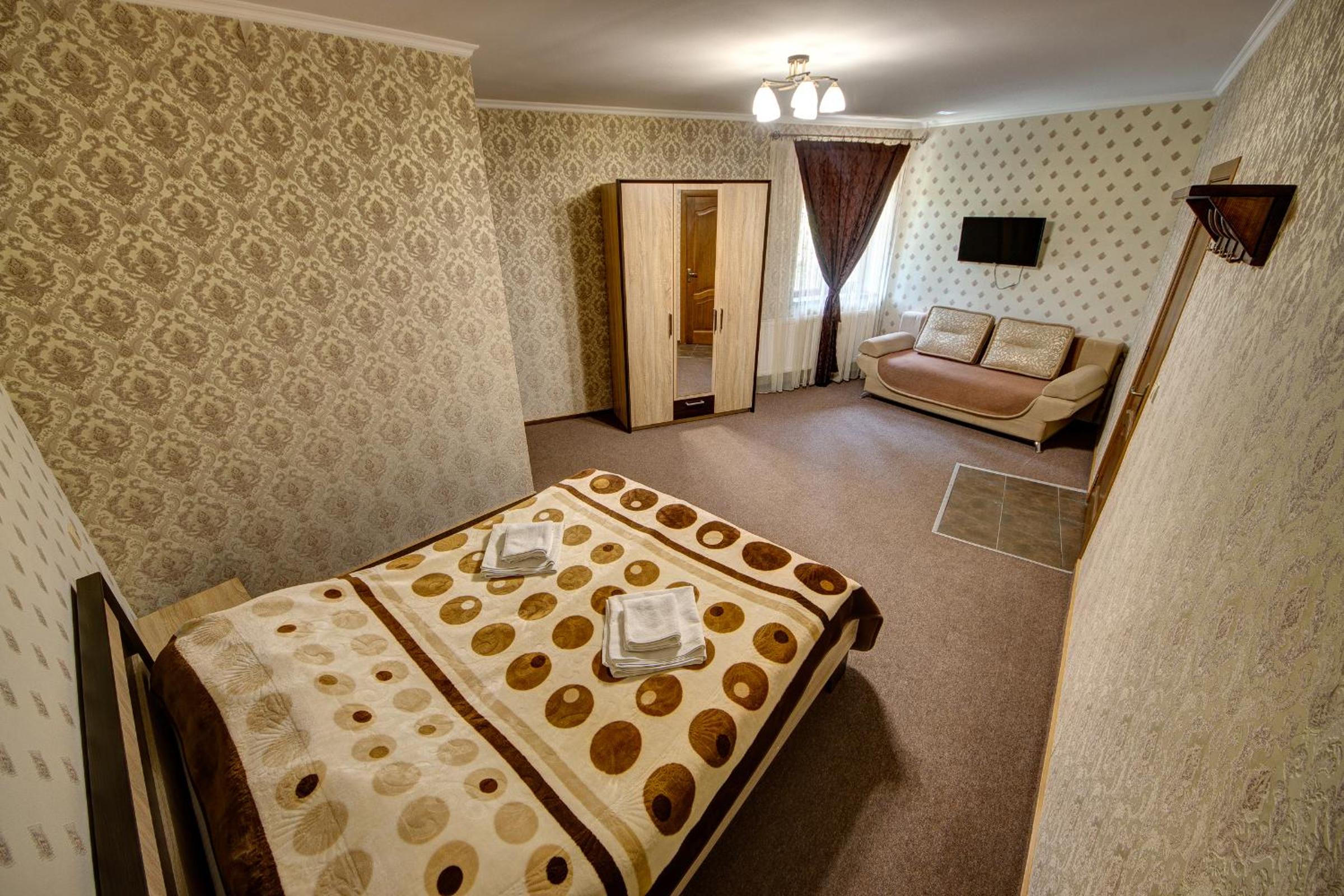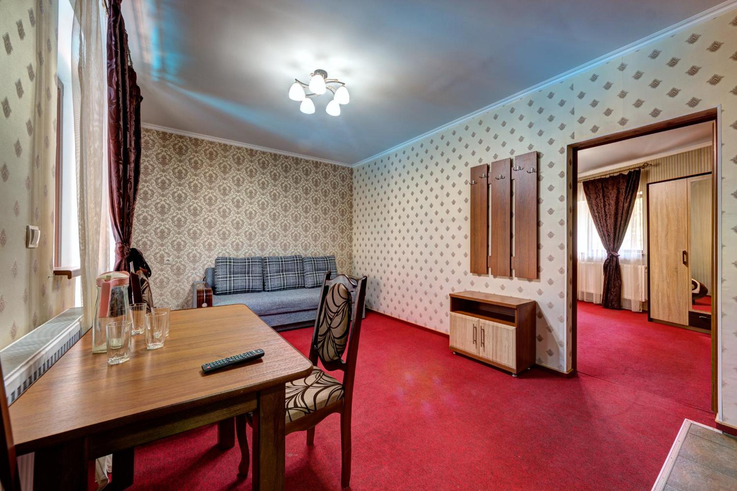 Занадто спекотно вночі спати в номері, номери трохи зношені, диван був продавлений, двері підлягають заміні.