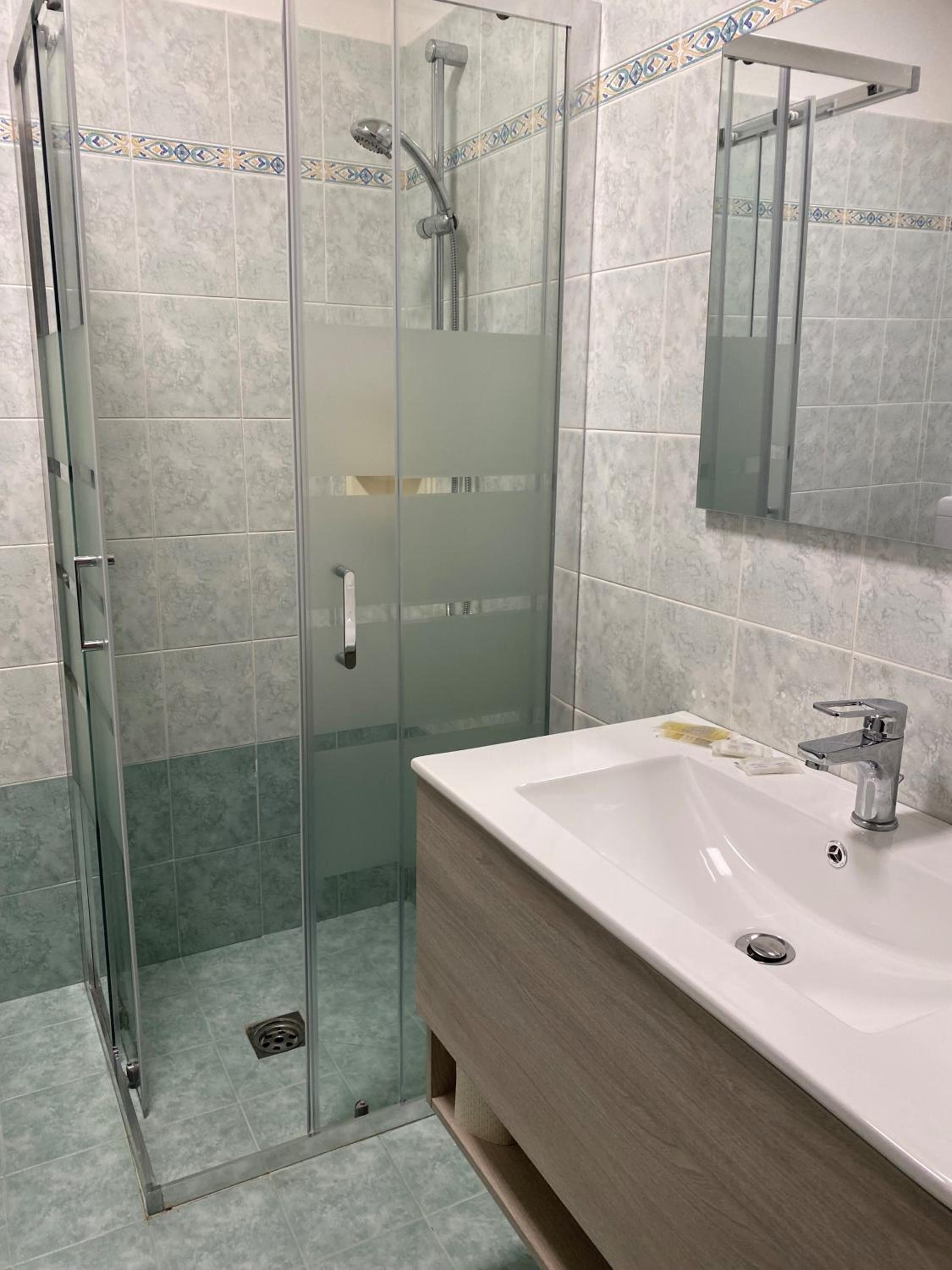 Doccia comoda e molto calda. Colazione varia e buona