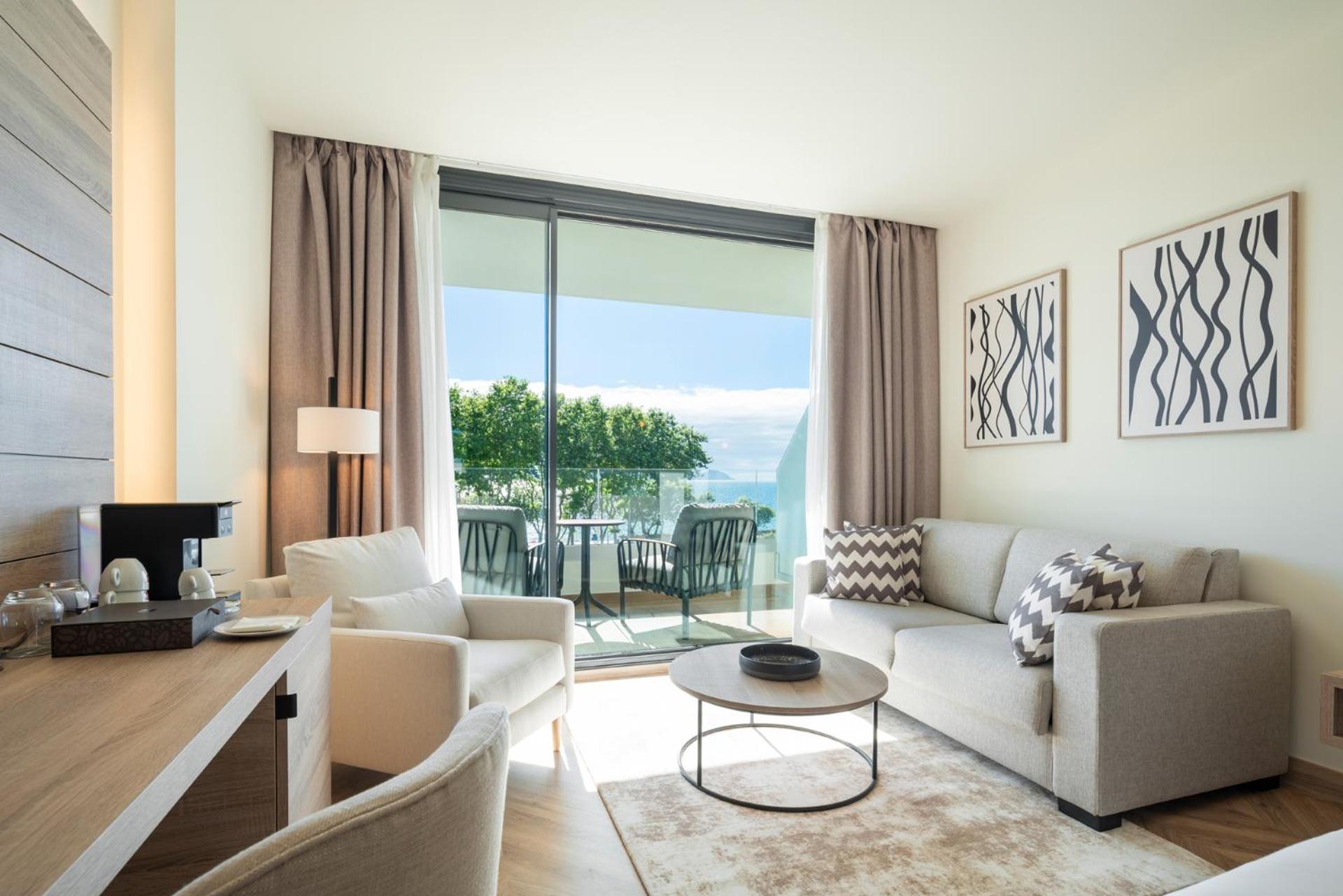Comfortable Rooms with Views: Unwind in rooms featuring modern amenities like a flat-screen TV, air conditioning, and a safety deposit box. Some rooms offer breathtaking sea views and a private terrace for a truly memorable experience.
