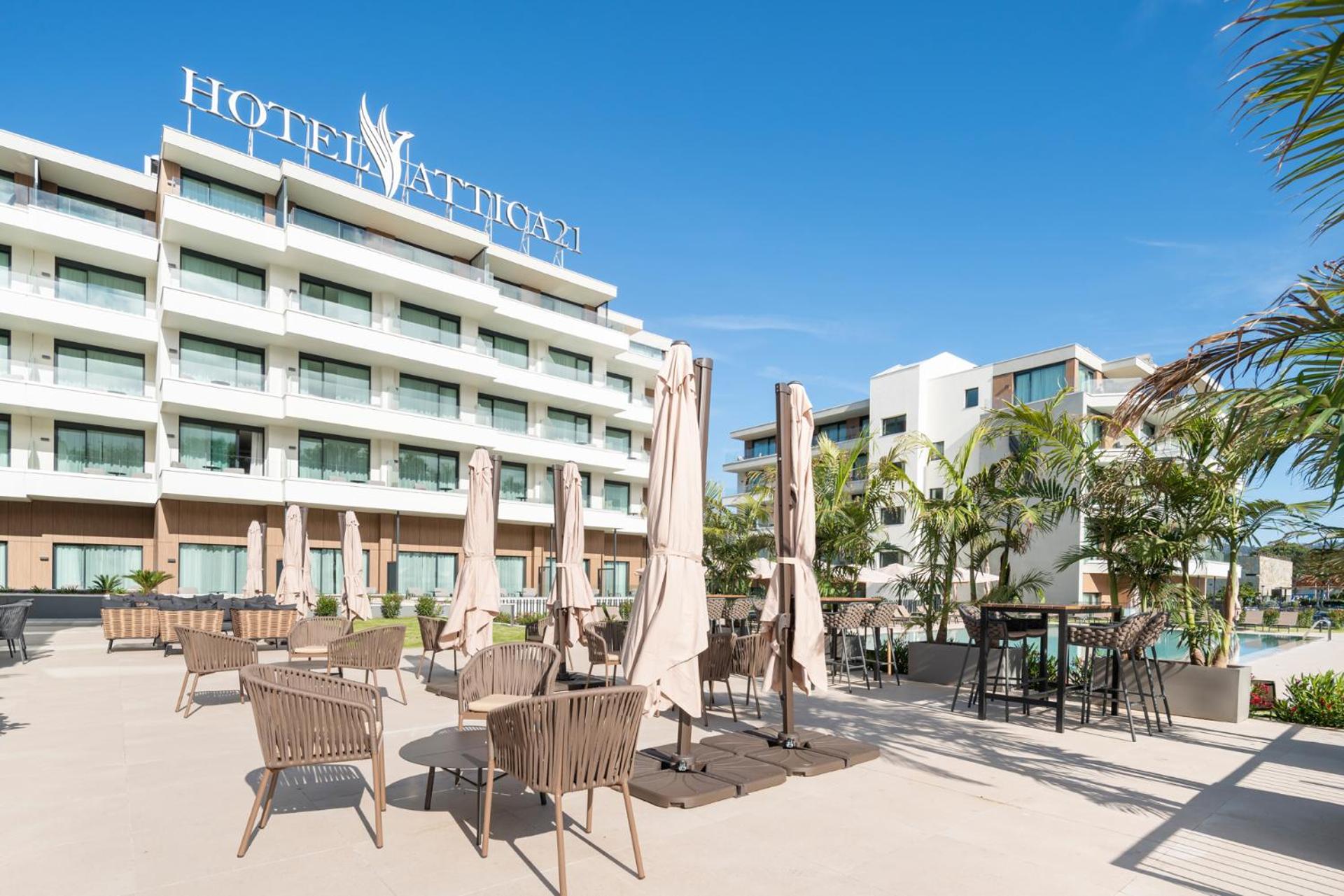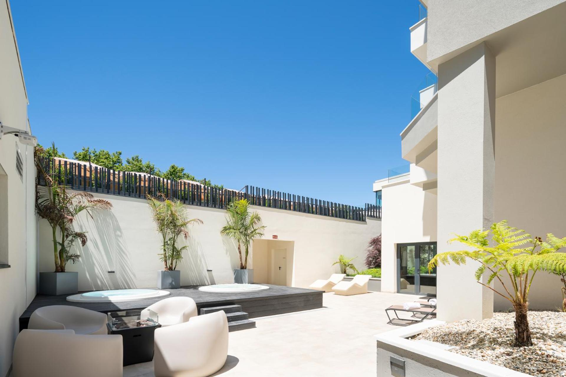 Stunning Outdoor Amenities: Dive into relaxation with a seasonal outdoor swimming pool, a well-equipped fitness centre, and a serene garden at Attica21 Vigo 4 Superior.