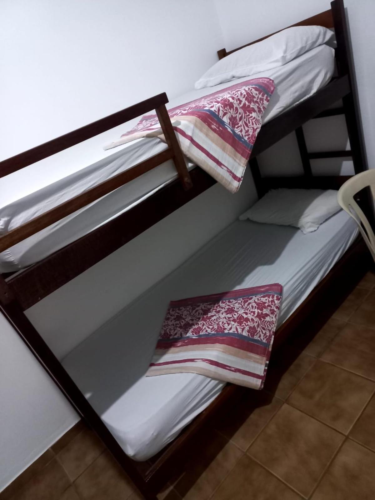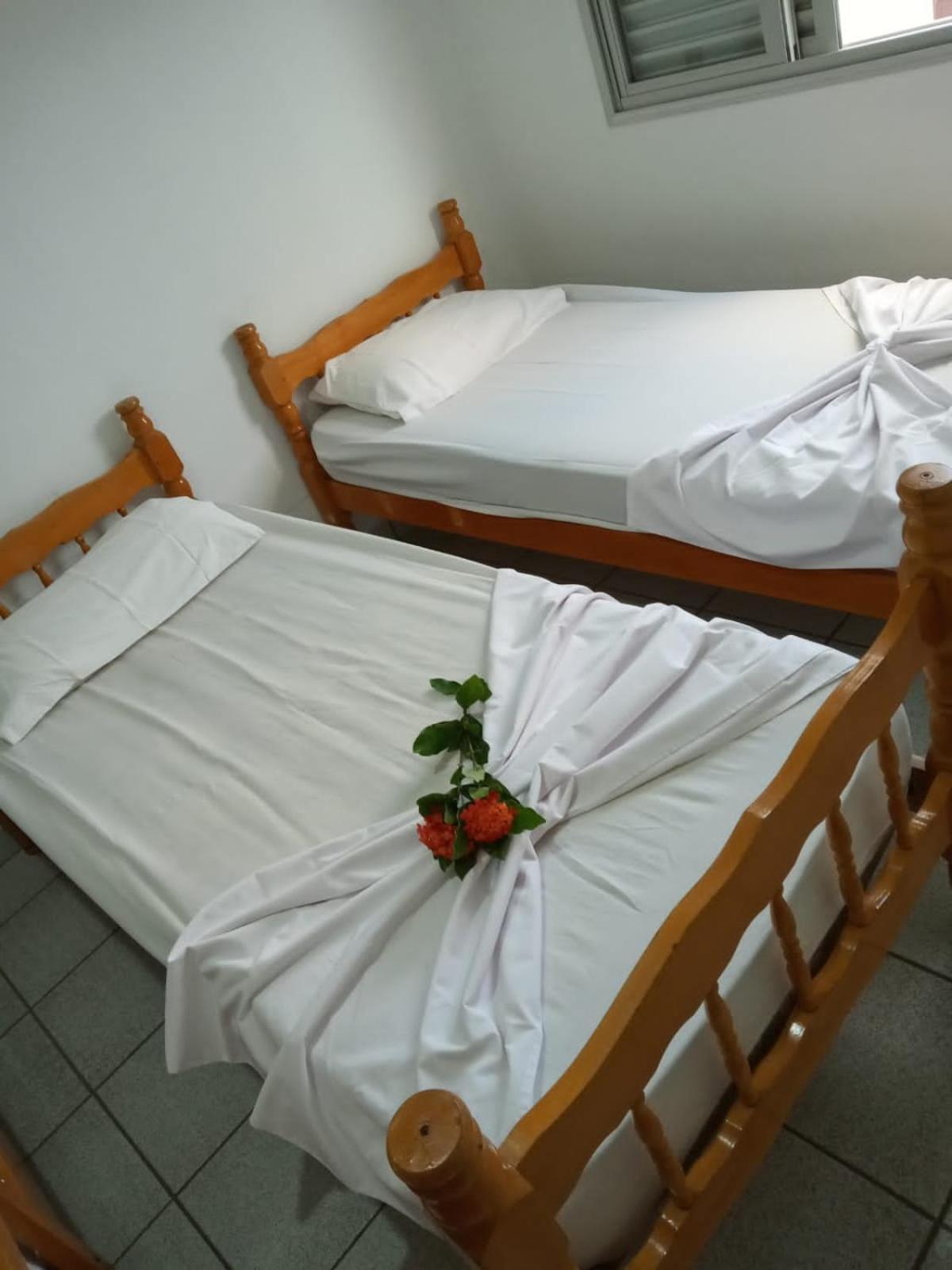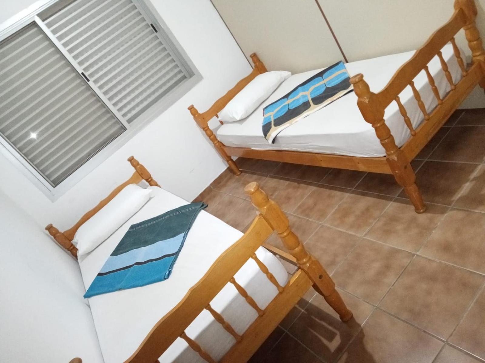 É bem perto da praia, o quarto bem espaçoso com camas confortáveis, super recomendo.