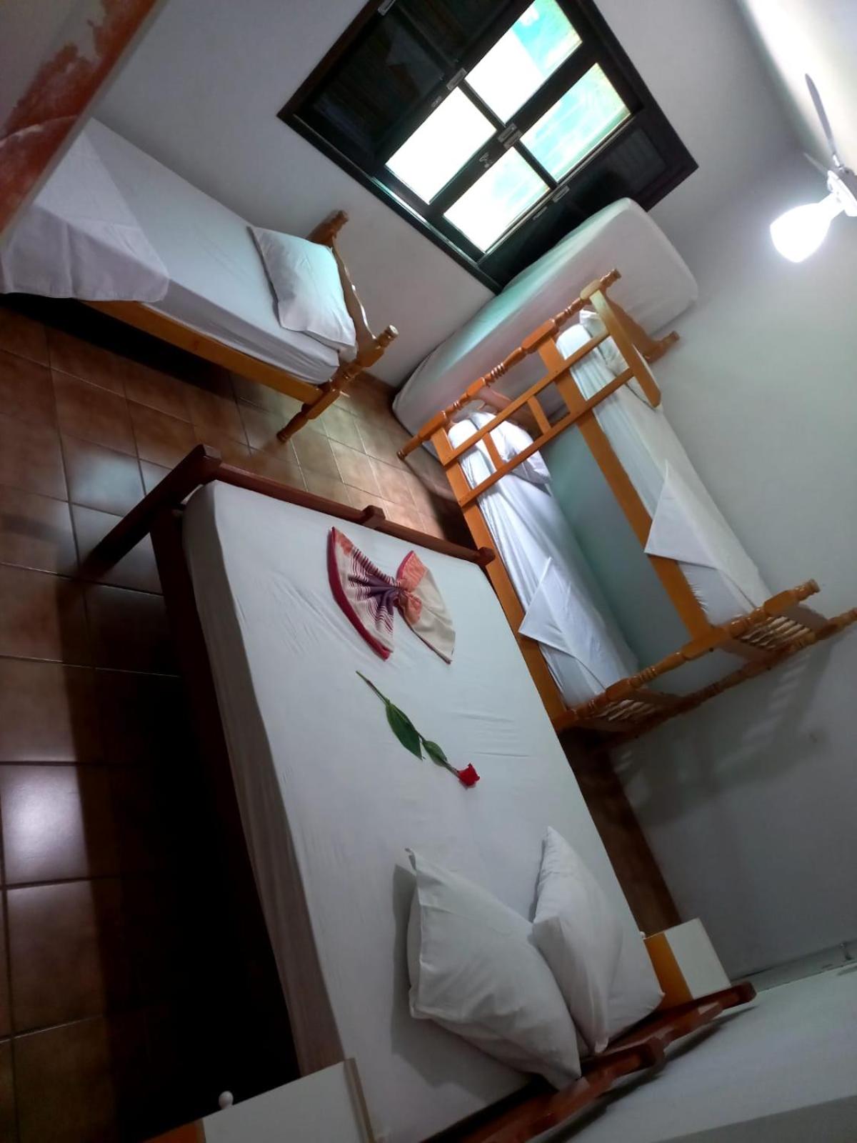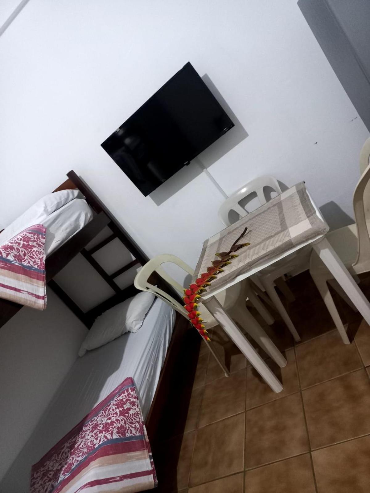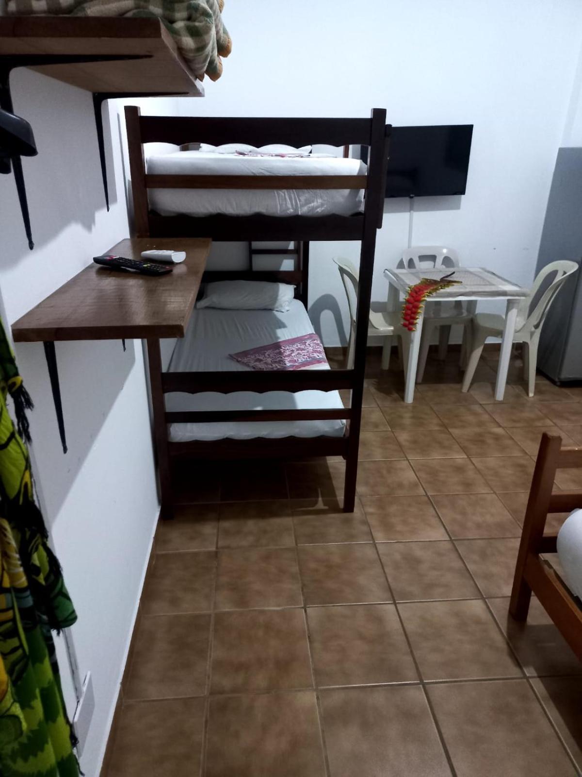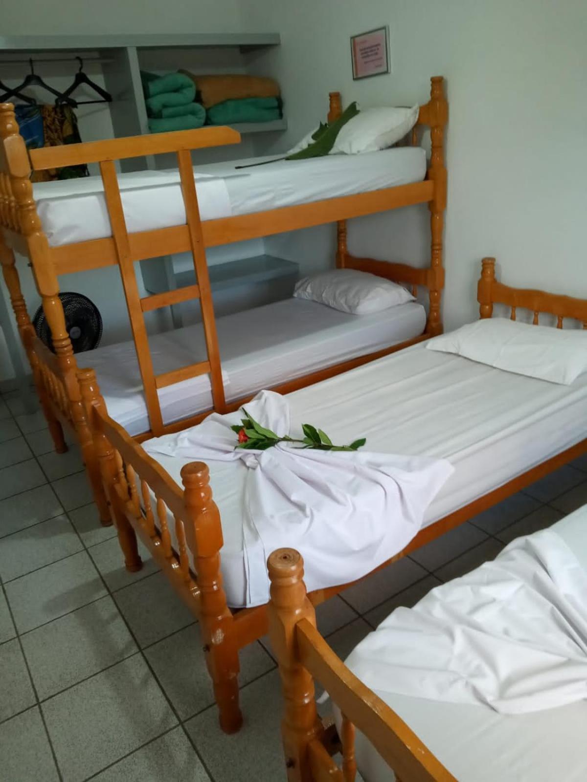 É bem perto da praia, o quarto bem espaçoso com camas confortáveis, super recomendo.