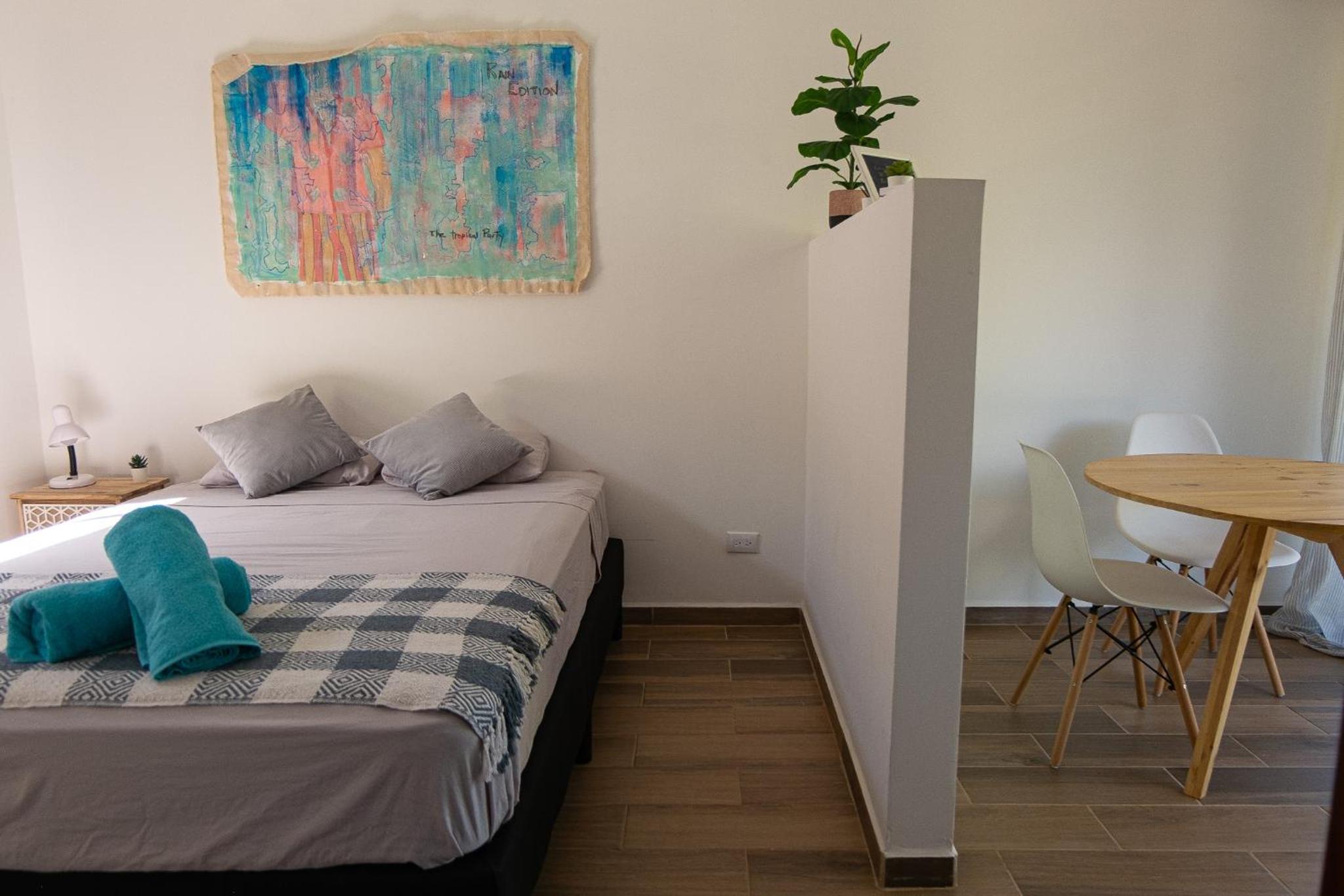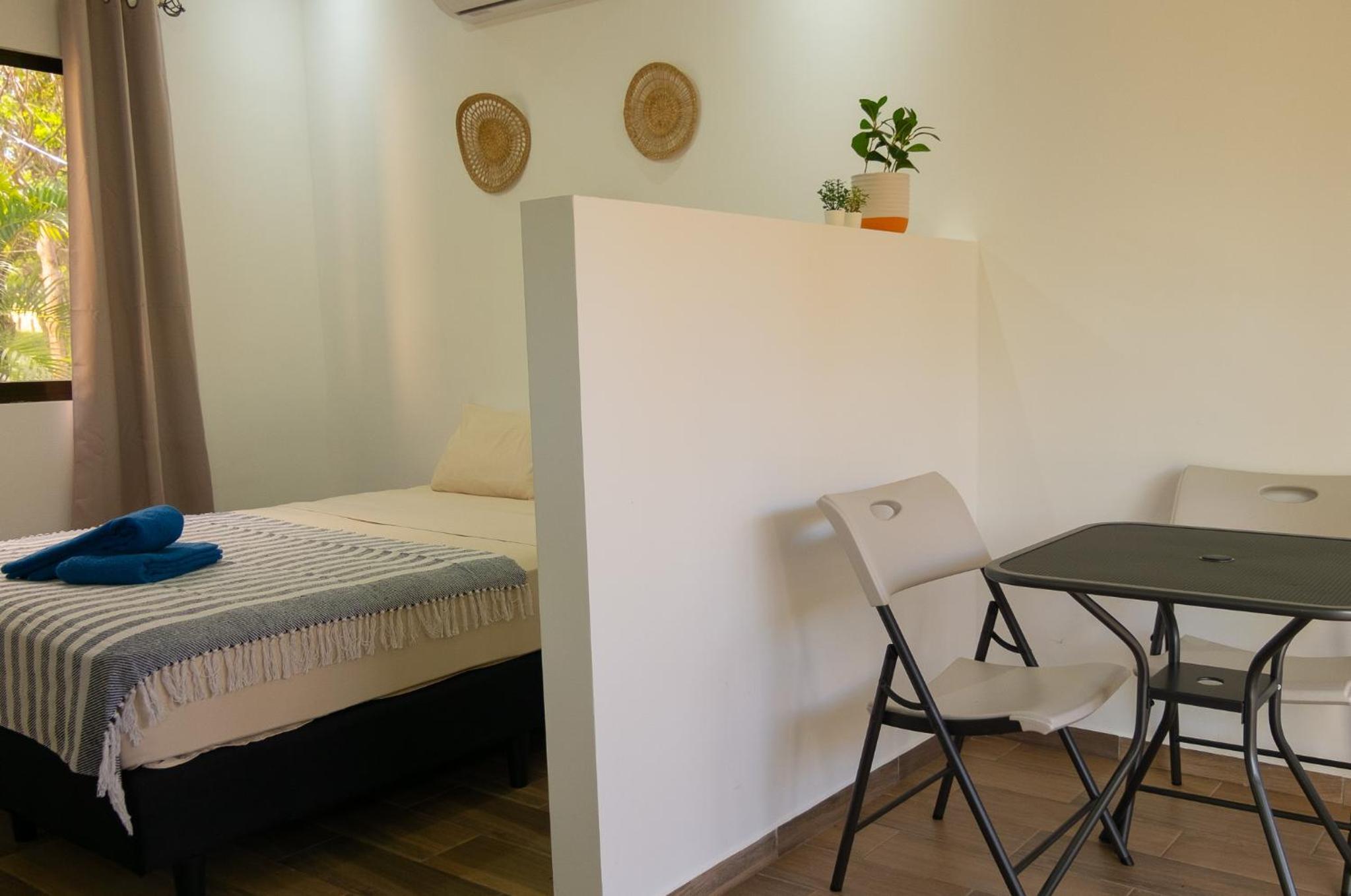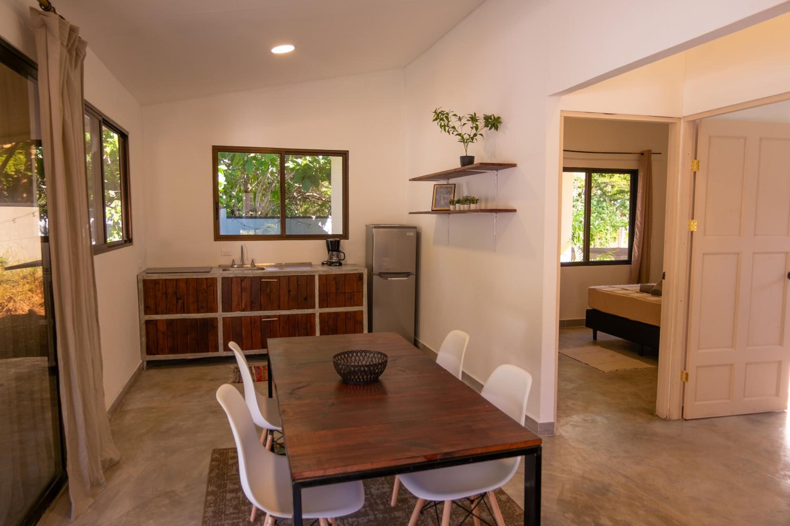Great modern cabina with kitchenette. A small pool if you need to escape from the heat. Away from the crazy touristic beaches will allow you to get a great sleep, but quiet beaches with locals fishing until sunset are only a short drive away.