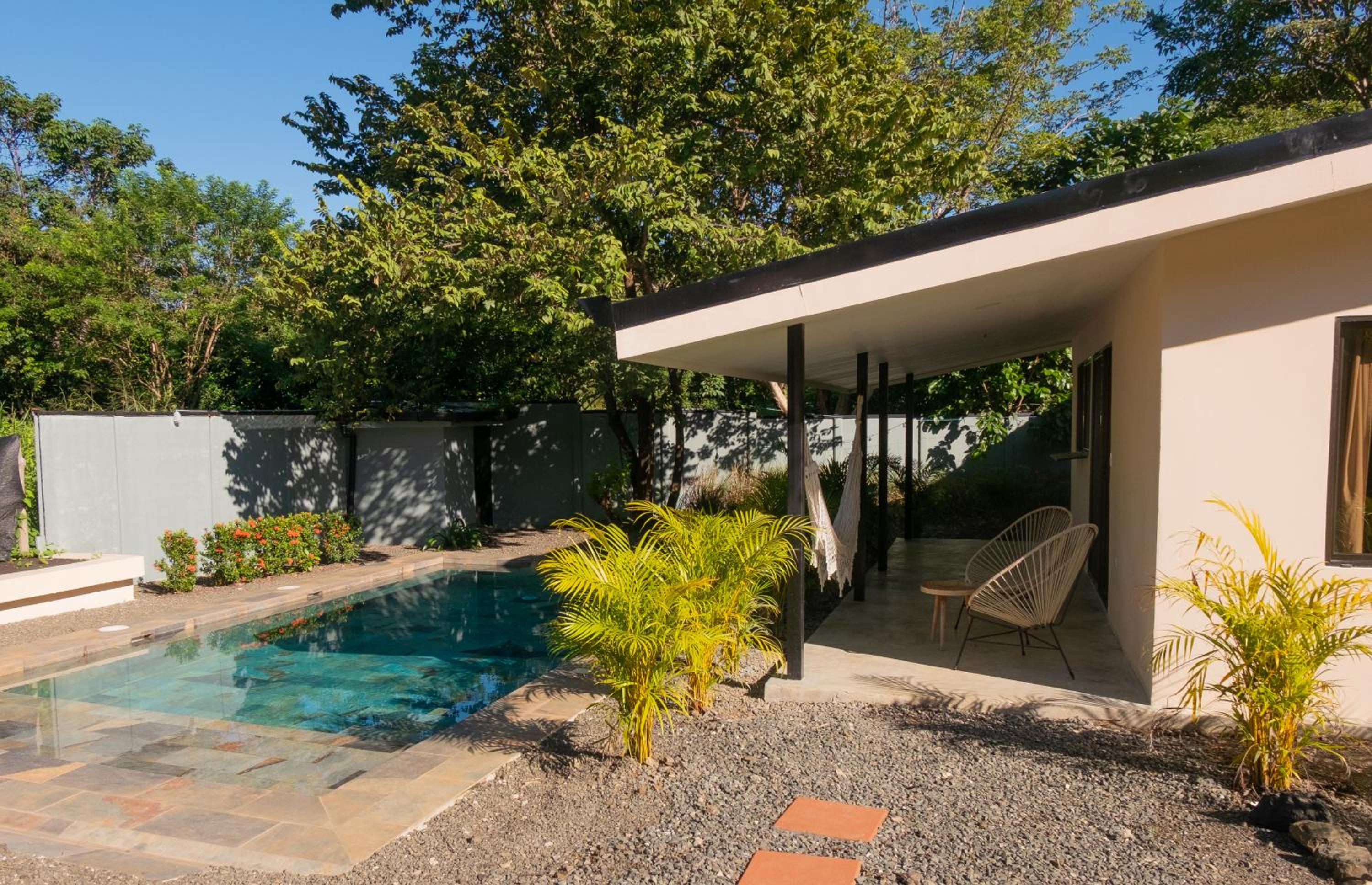 It’s a great location for surfers! Very close to playa negra but also just a short drive to avellanas and the southern beaches. It’s very quiet and the pool is amazing! We had a very good time!
